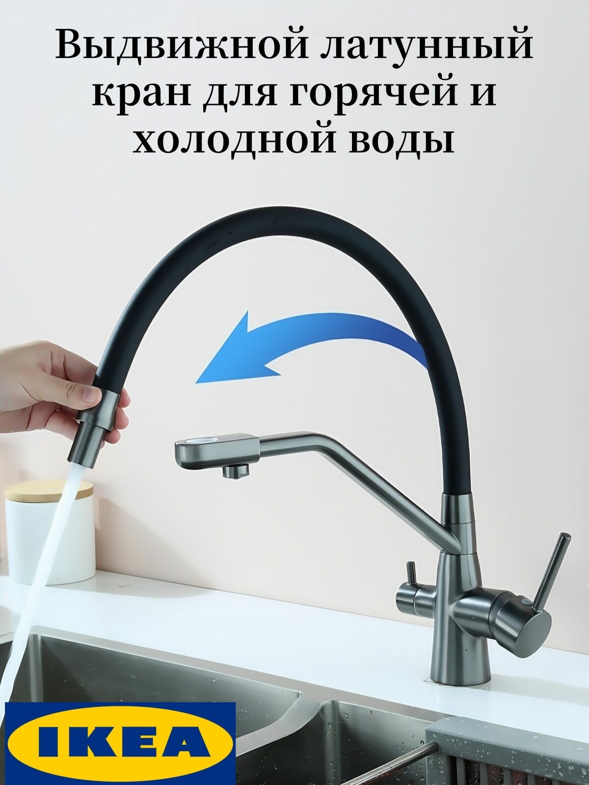 Кухонный смеситель с выдвижным изливом, керамический картридж, 360 вращение, холодный/горячий режим интересное: