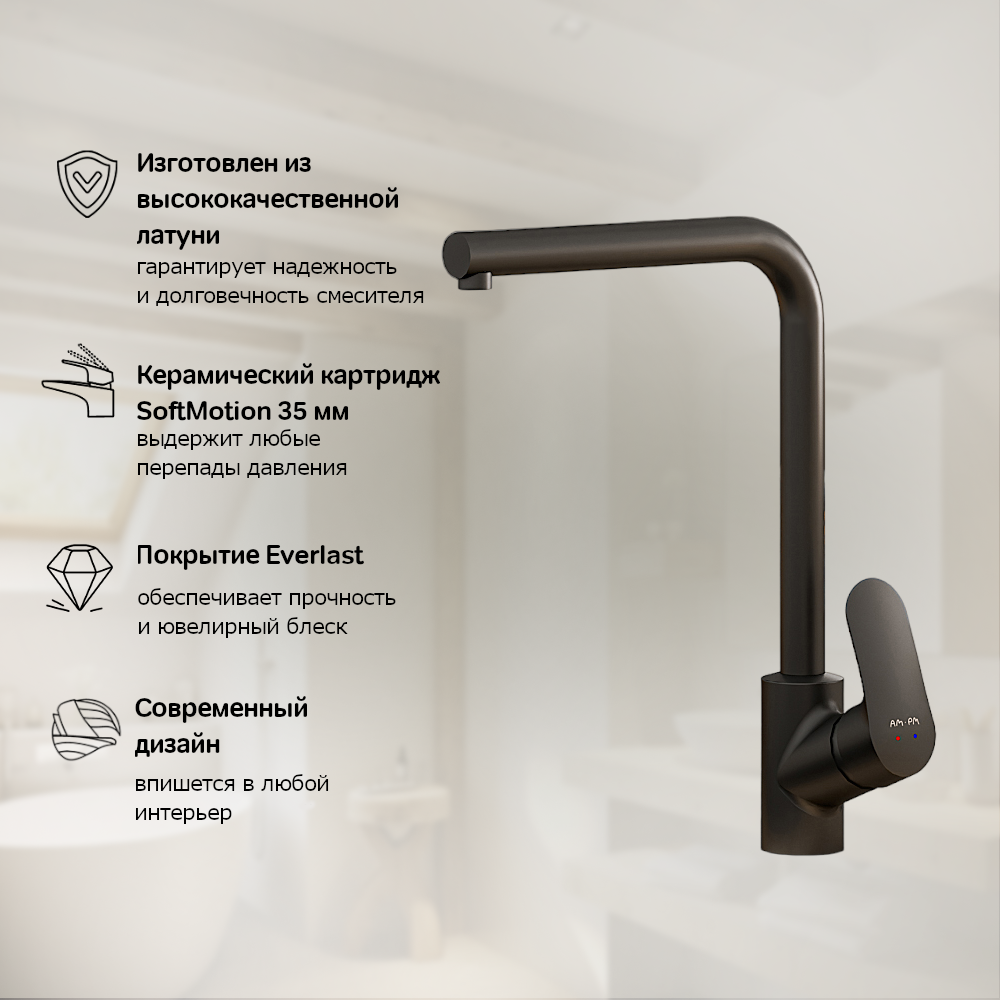 Смеситель для кухни AM.PM Chic L-образный излив, черный, рычажное управление интересное: