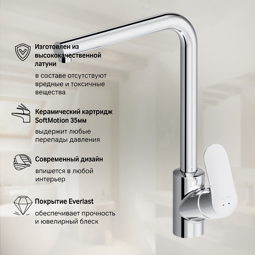 Смеситель AM.PM Chic, для кухни, L-образный, гарантия 10 лет интересное: