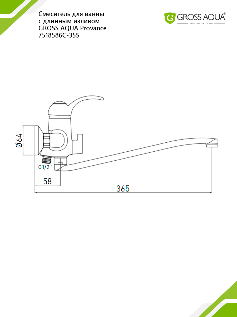 Купить Смеситель для ванны и душа с длинным поворотным изливом Gross Aqua Provance, латунь, хром, 7518586C-35S
