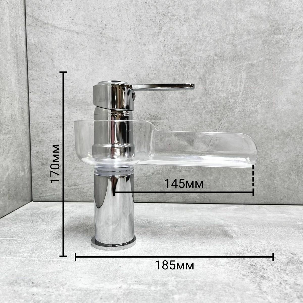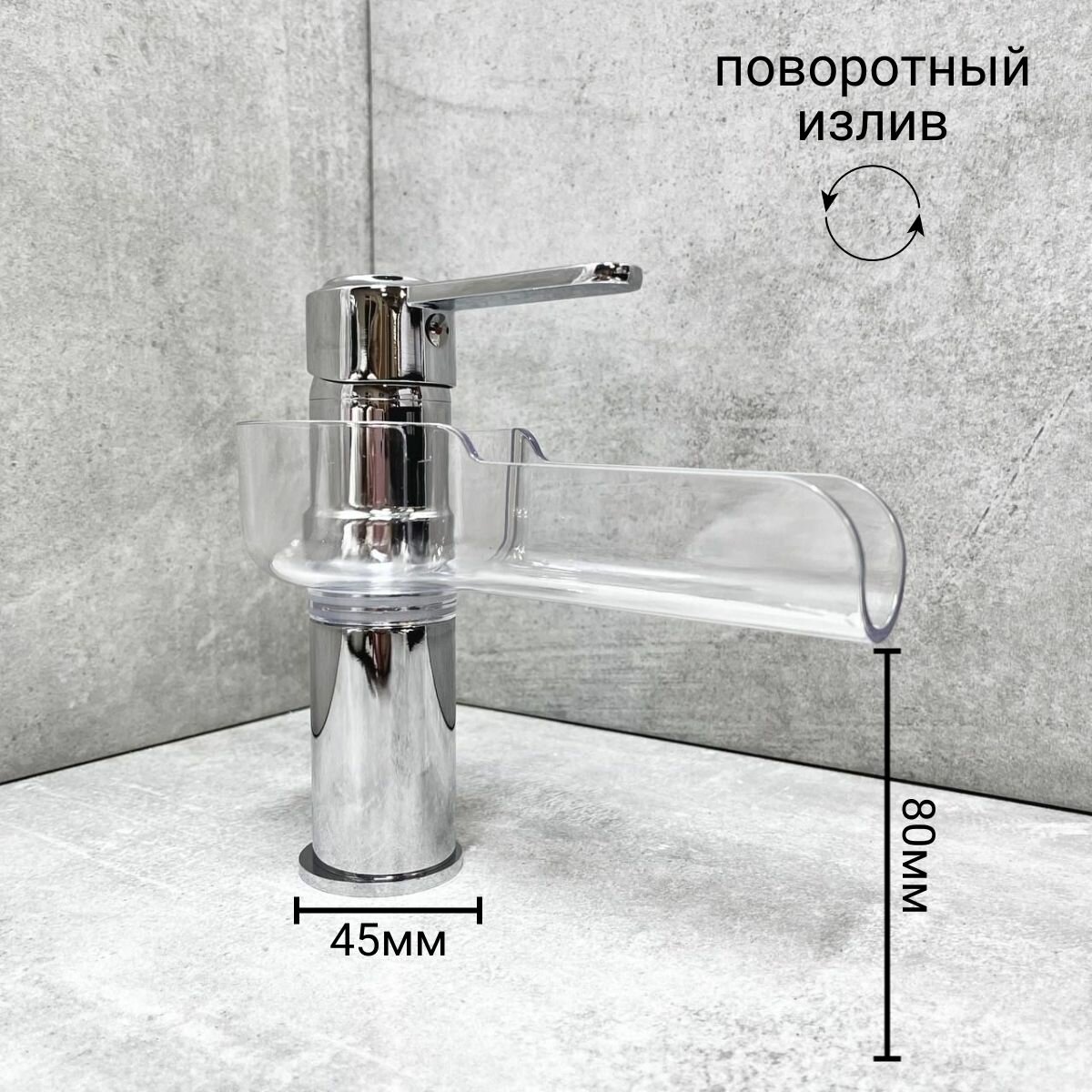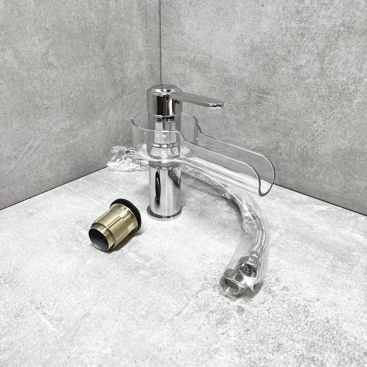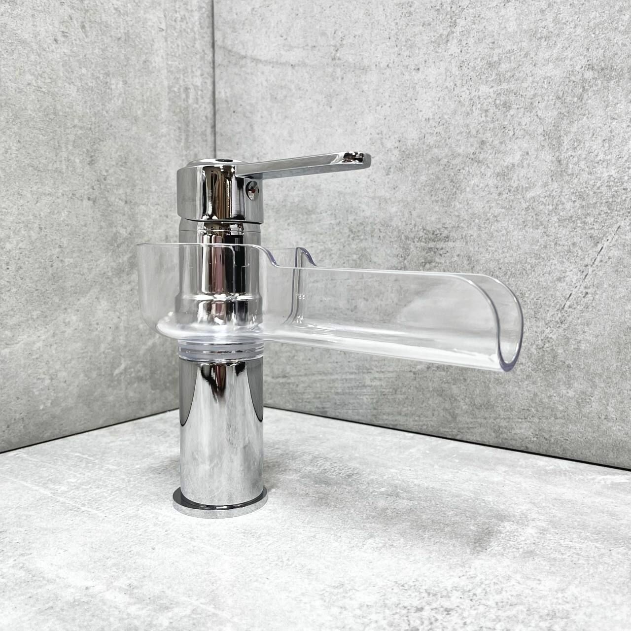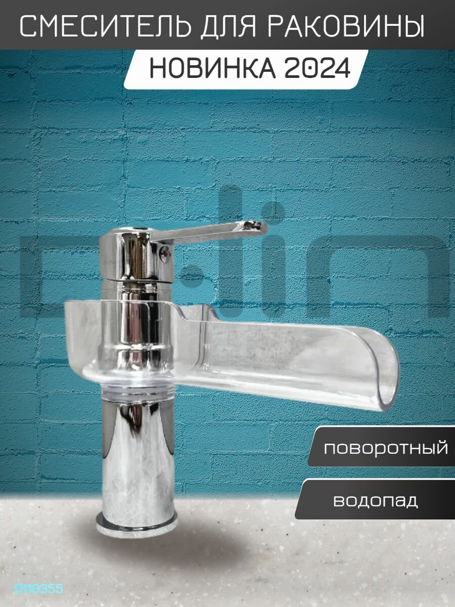 Смеситель для раковины, умывальника D-LIN D110355, поворотный излив-водопад, на гайке, хром, материал: латунь, пластик. интересное: