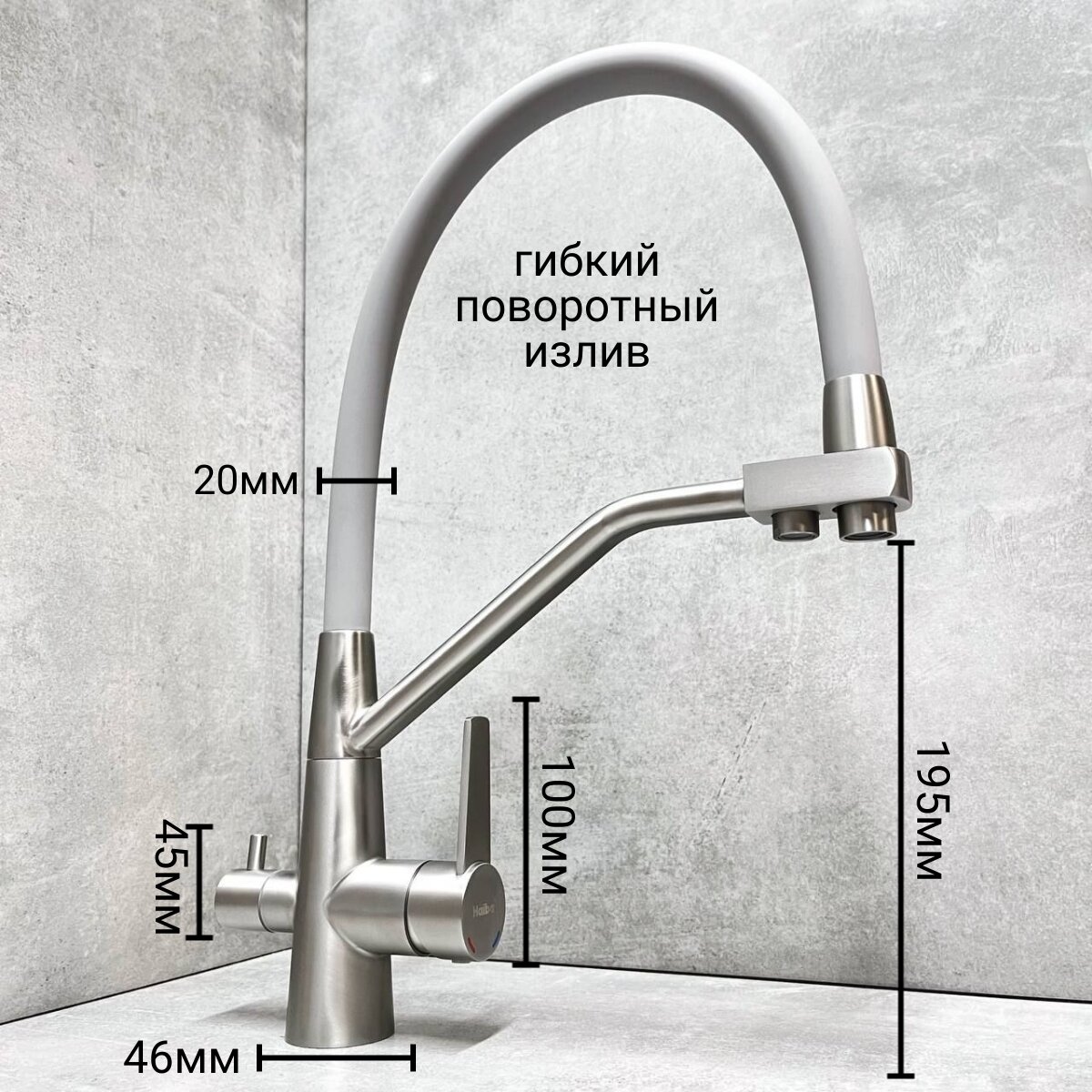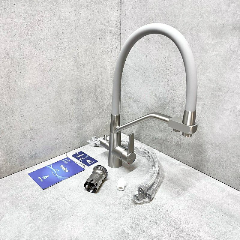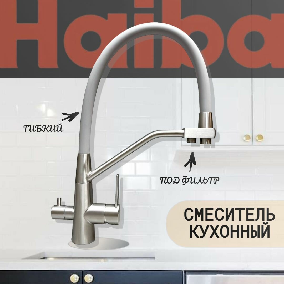 Смеситель для кухни Haiba HB76822-3 с гибким силиконовым изливом, подключением фильтра питьевой воды