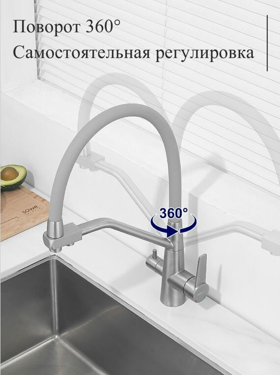 Смеситель для кухни Haiba HB76822-3 с гибким силиконовым изливом, подключением фильтра питьевой воды