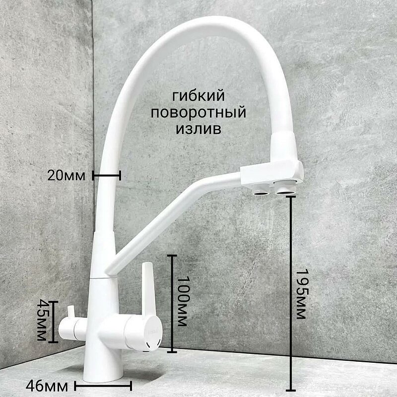 Смеситель для кухни с подключением фильтра питьевой воды; Haiba HB76822-8, цвет- белый/матовый