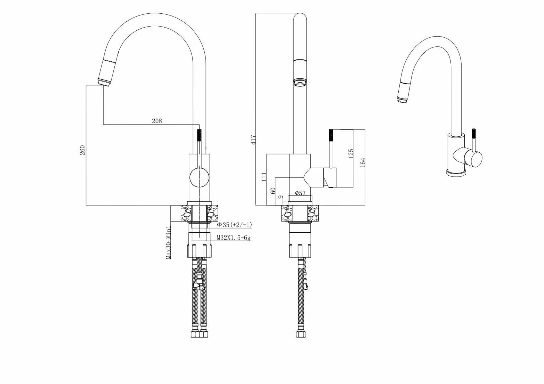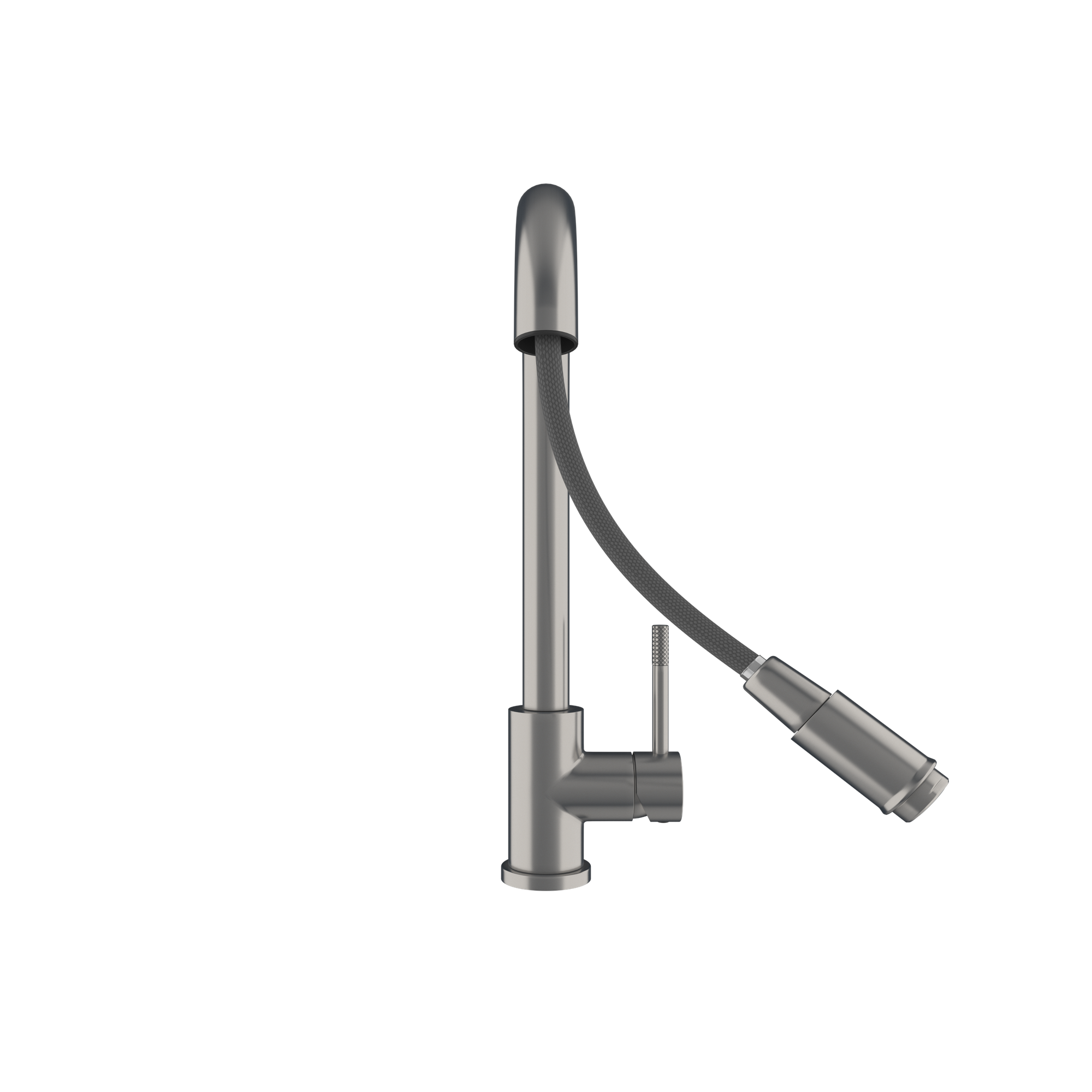 Смеситель для кухни поворотный из нержавеющей стали с вытяжным изливом черный EL_K30Black