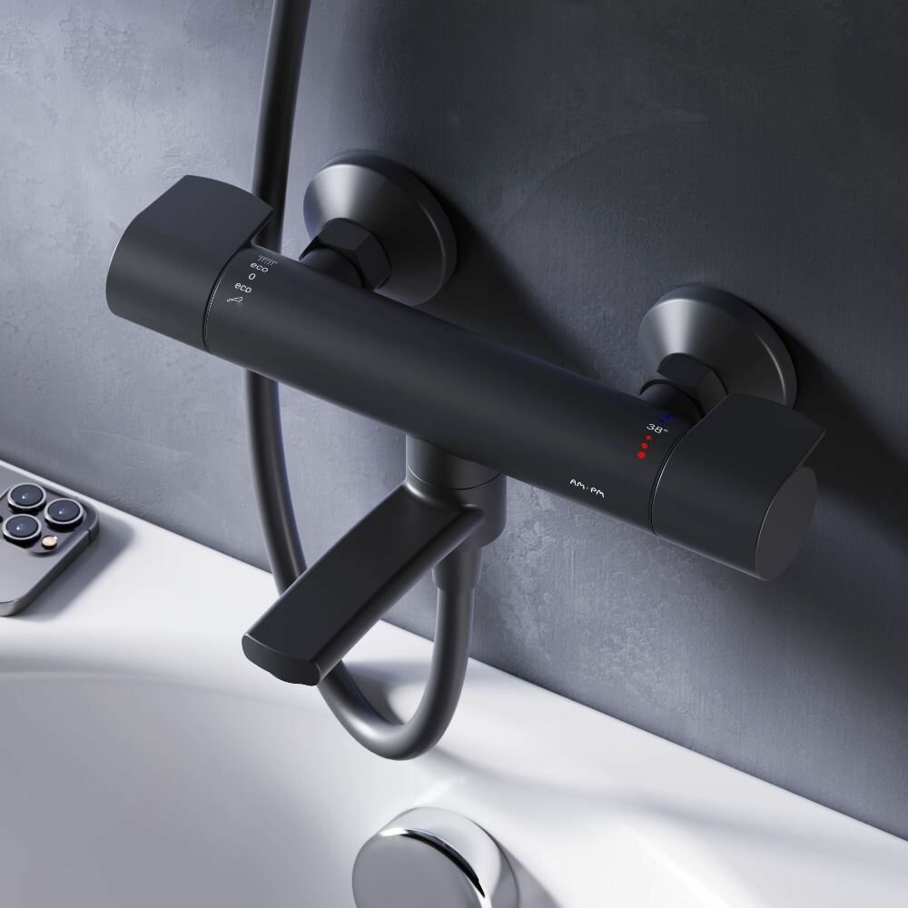 Смеситель для ванны и душа X-Joy с термостатом, латунь, черный интересное: