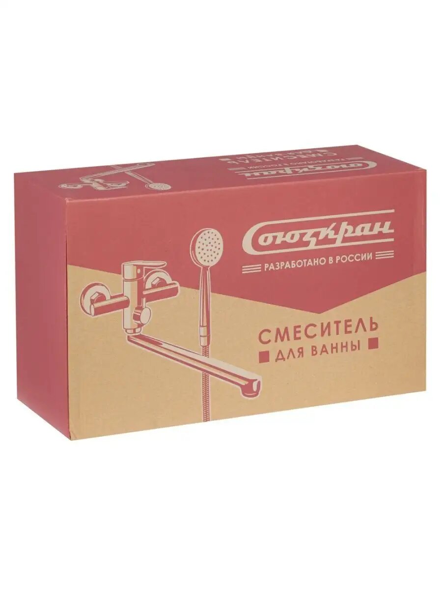 СоюзКран Смеситель для ванны с душем, прямой излив 35см, керам. картридж 35мм, хром, цинк, SK08-P136
