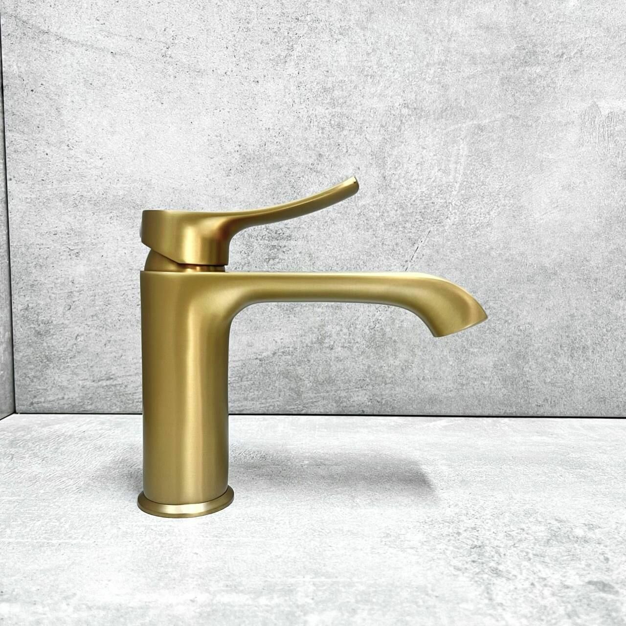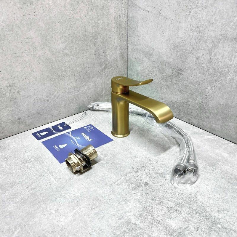 СохранитьСмеситель для раковины Haiba HB10553-5, монолитный излив, материал: латунь, цвет: золотистый интересное: