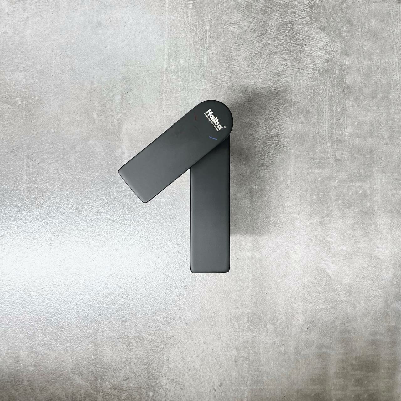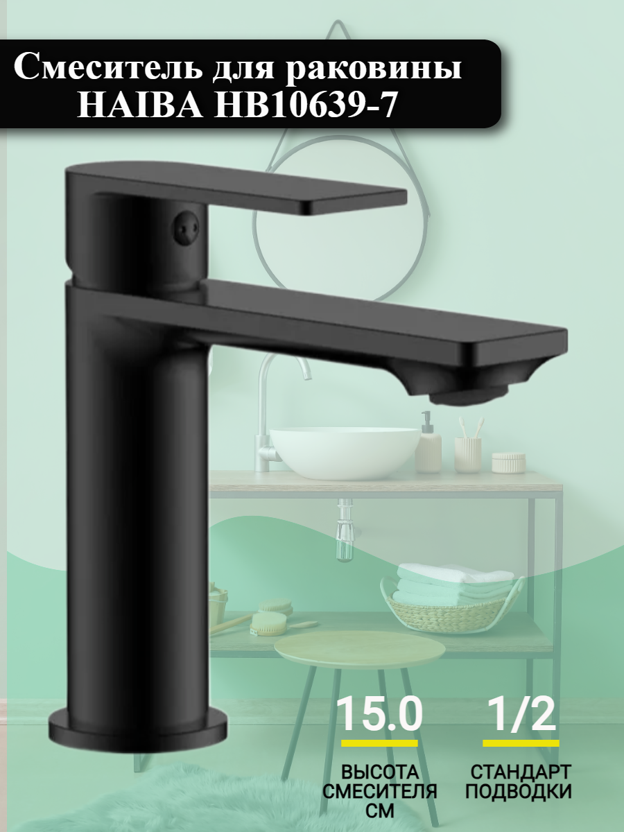 Смеситель для раковины и умывальника с монолитным изливом HAIBA HB10553-7, материал: латунь, цвет: черный