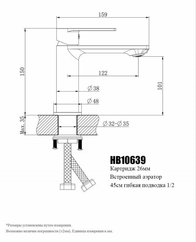 Смеситель для раковины, умывальника, с монолитным изливом и съемным аэратором. HAIBA, латунный, хром HB10639