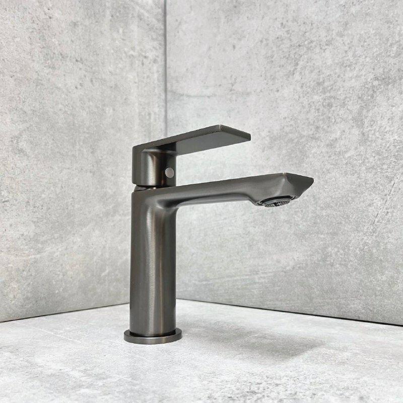 Смеситель для раковины/умывальника с монолитным изливом (латунь) HAIBA HB10639-3 цвет-оружейная сталь.