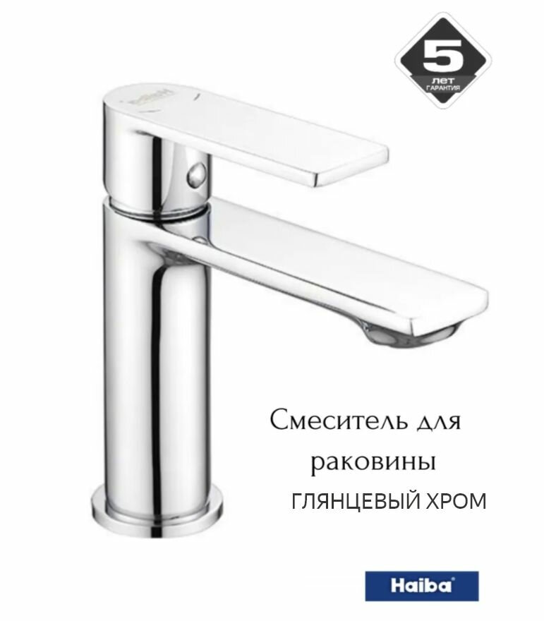 Смеситель для раковины и умывальника с монолитным изливом HAIBA HB10553, материал: латунь, покрытие: хром
