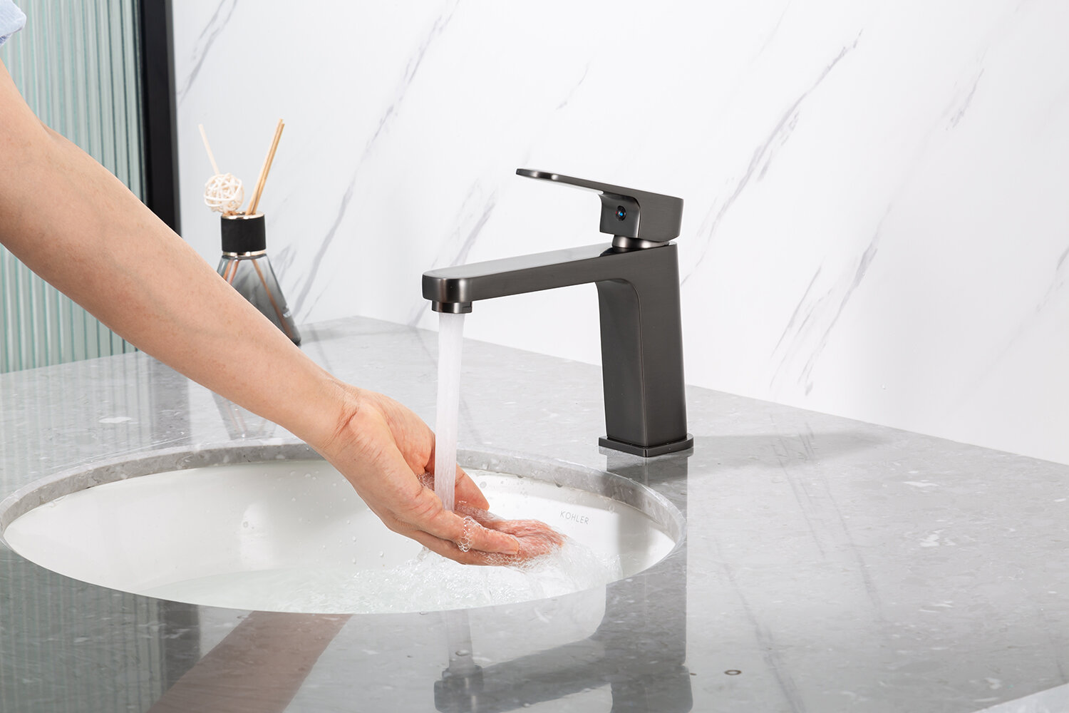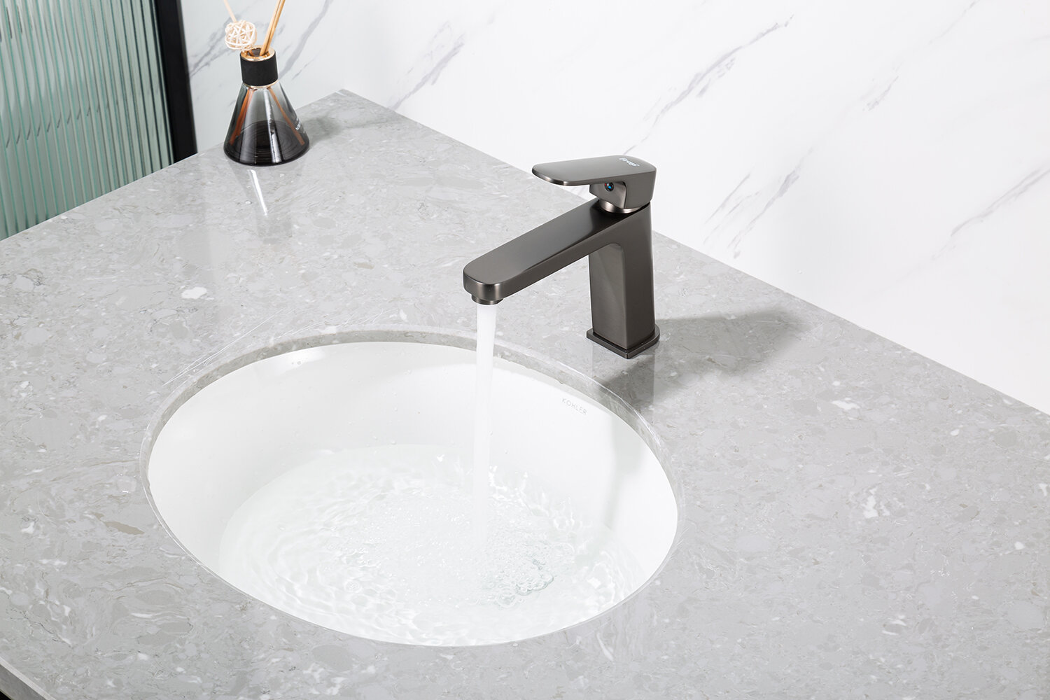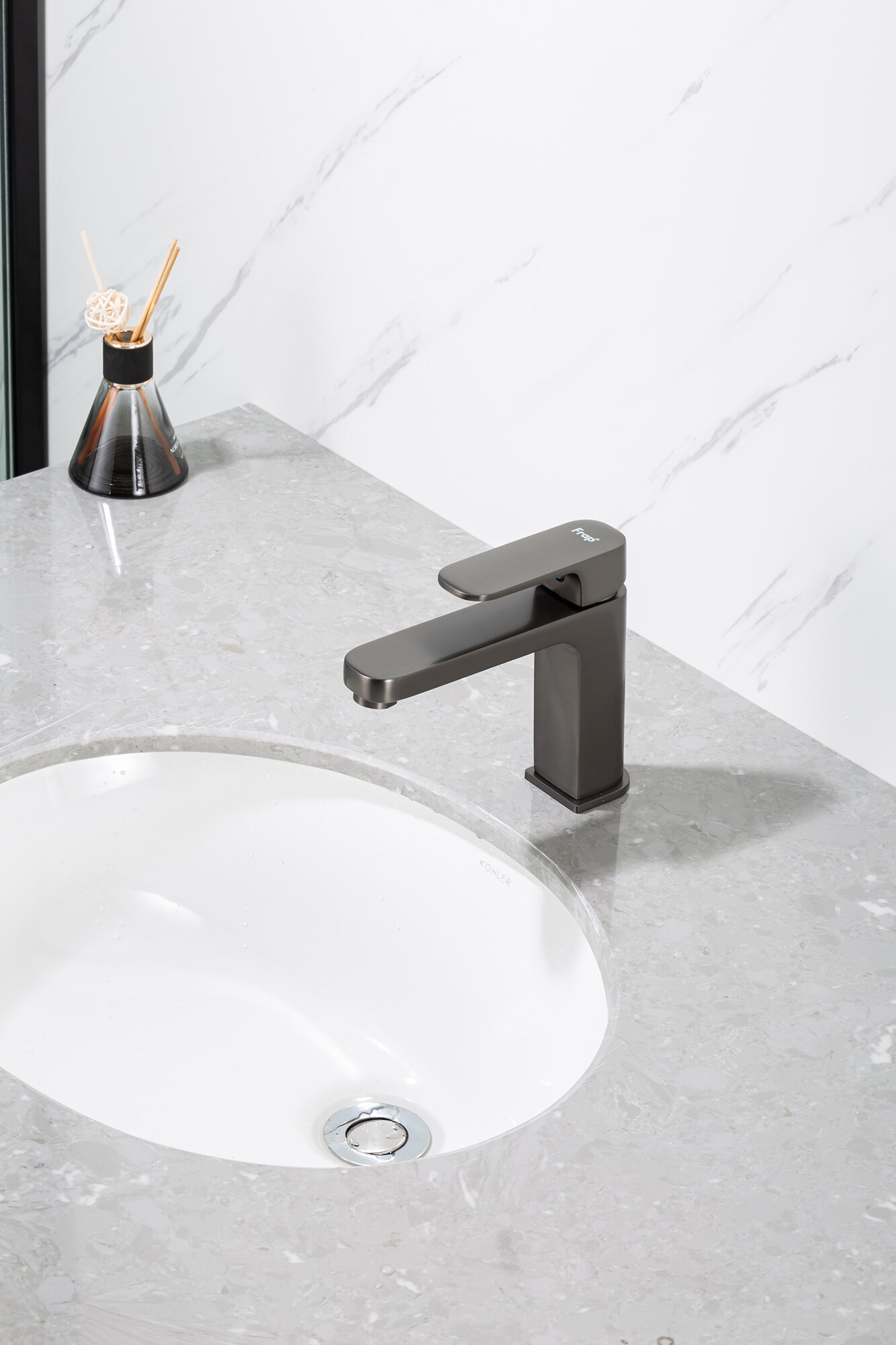 Смеситель для раковины (умывальника) Frap F1089-9 оружейная сталь, покрытие PVD, латунь, управление рычажное интересное: