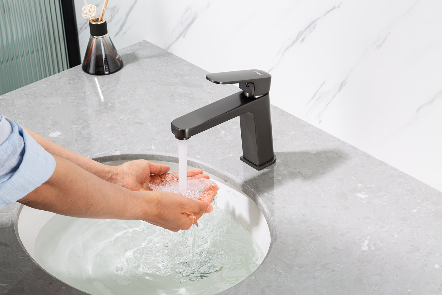 Купить Смеситель для раковины (умывальника) Frap F1089-9 оружейная сталь, покрытие PVD, латунь, управление рычажное