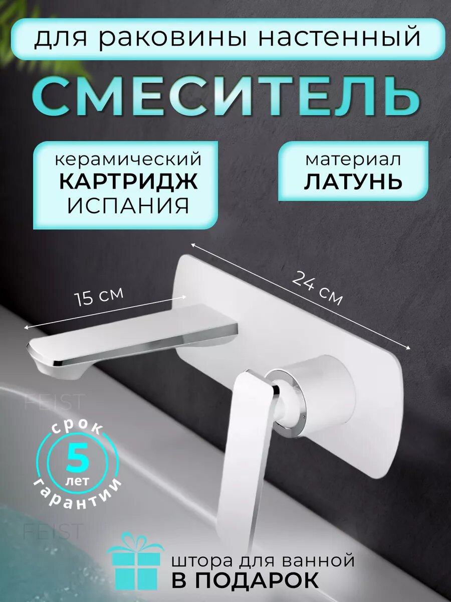 Смеситель для раковины встраиваемый с коротким изливом, цвет: белый/хром интересное: