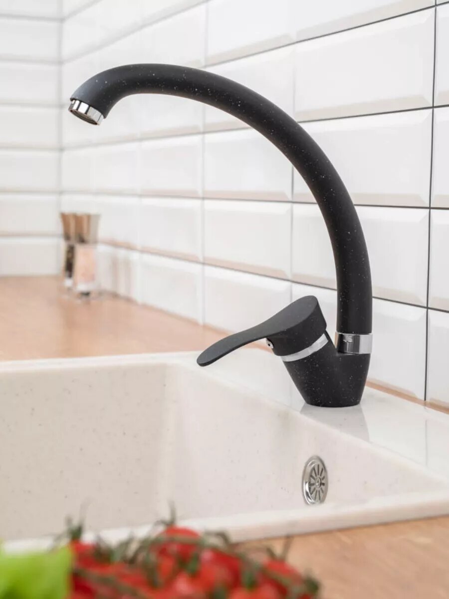 Смеситель для кухни с высоким поворотным изливом 25 см, цинк интересное: