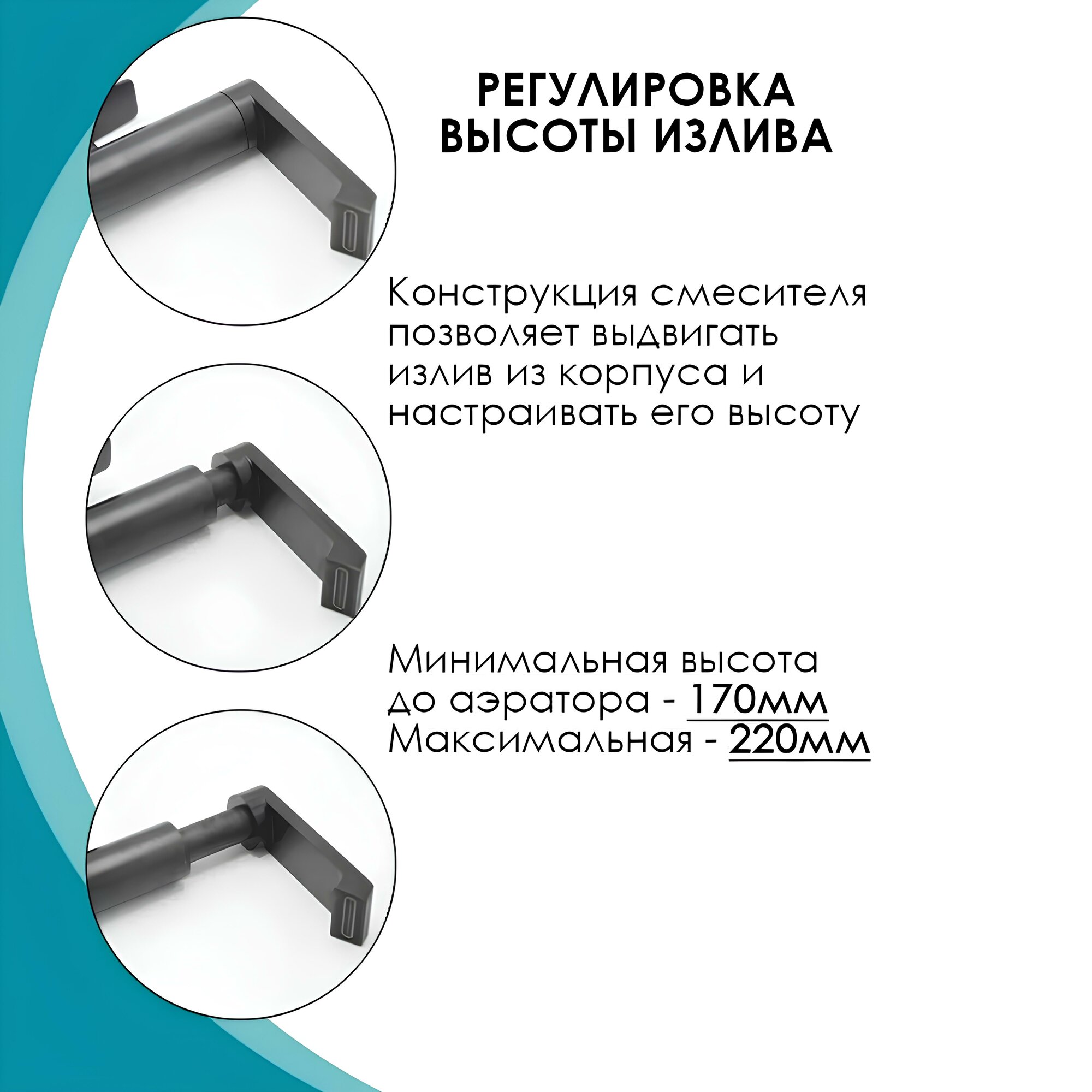 Смеситель для раковины с регулировкой по высоте, поворотный, Dikalan интересное: