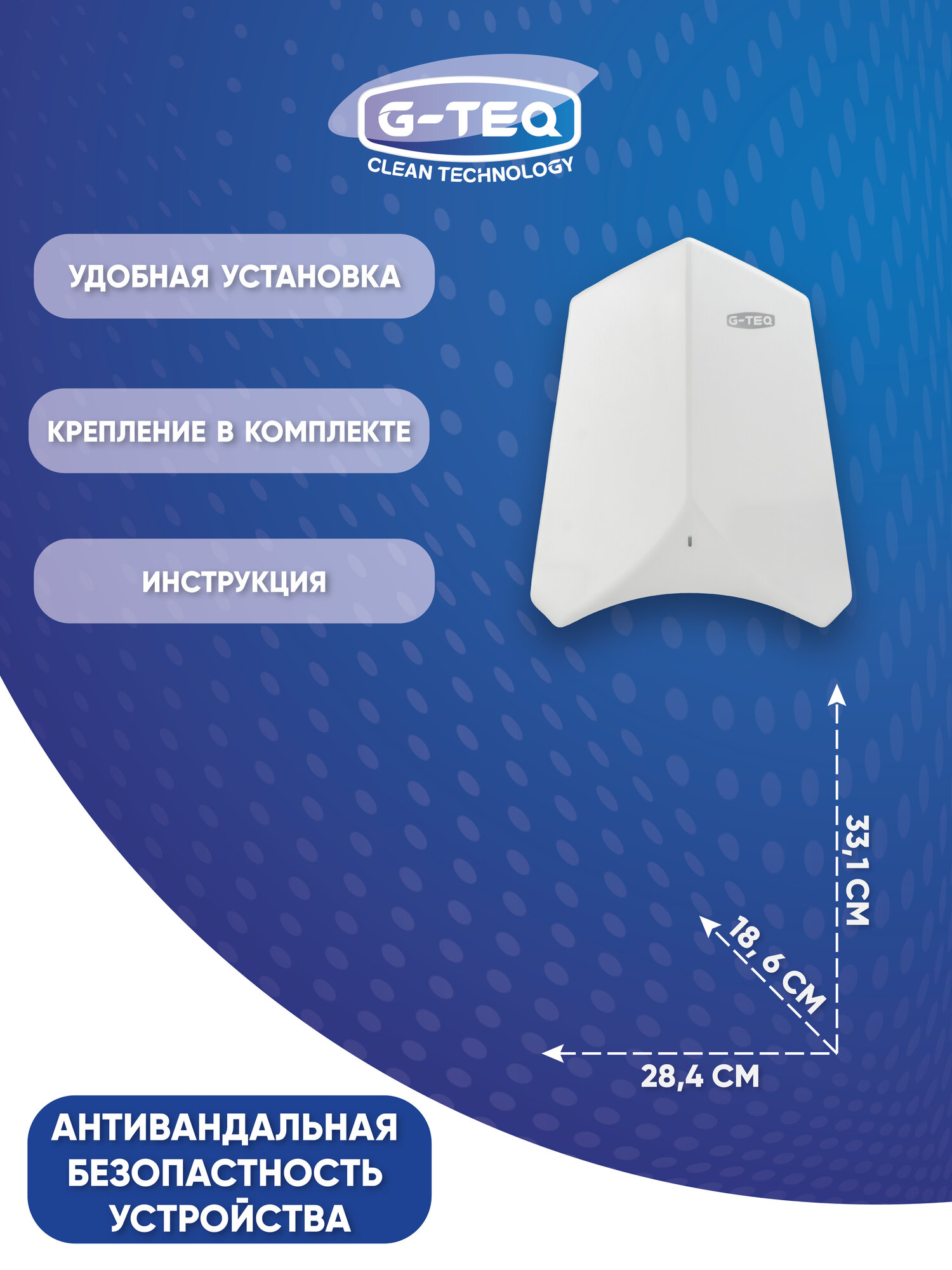 Купить Высокоскоростная сушилка для рук V-windblade Премиум G-teq 8883 PW