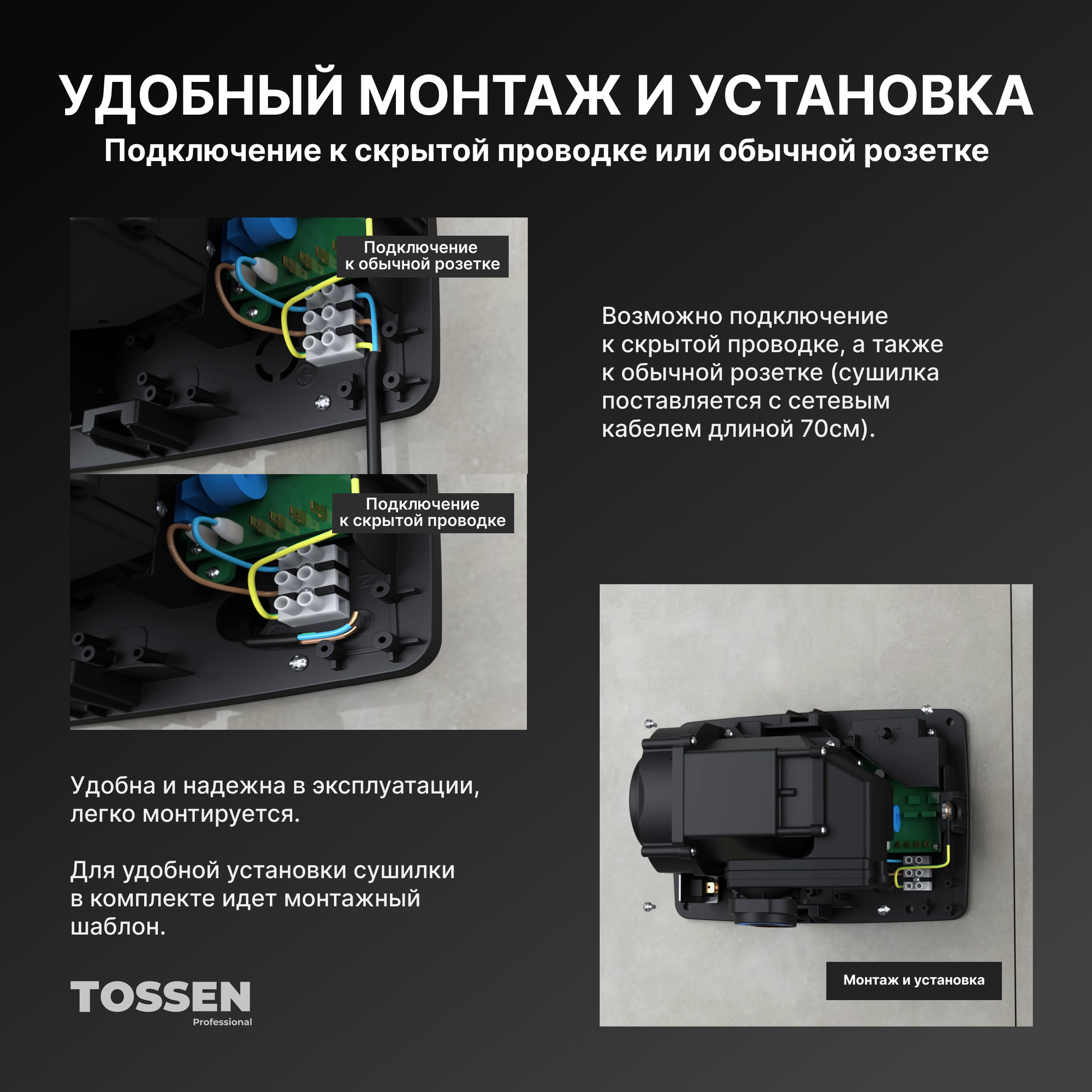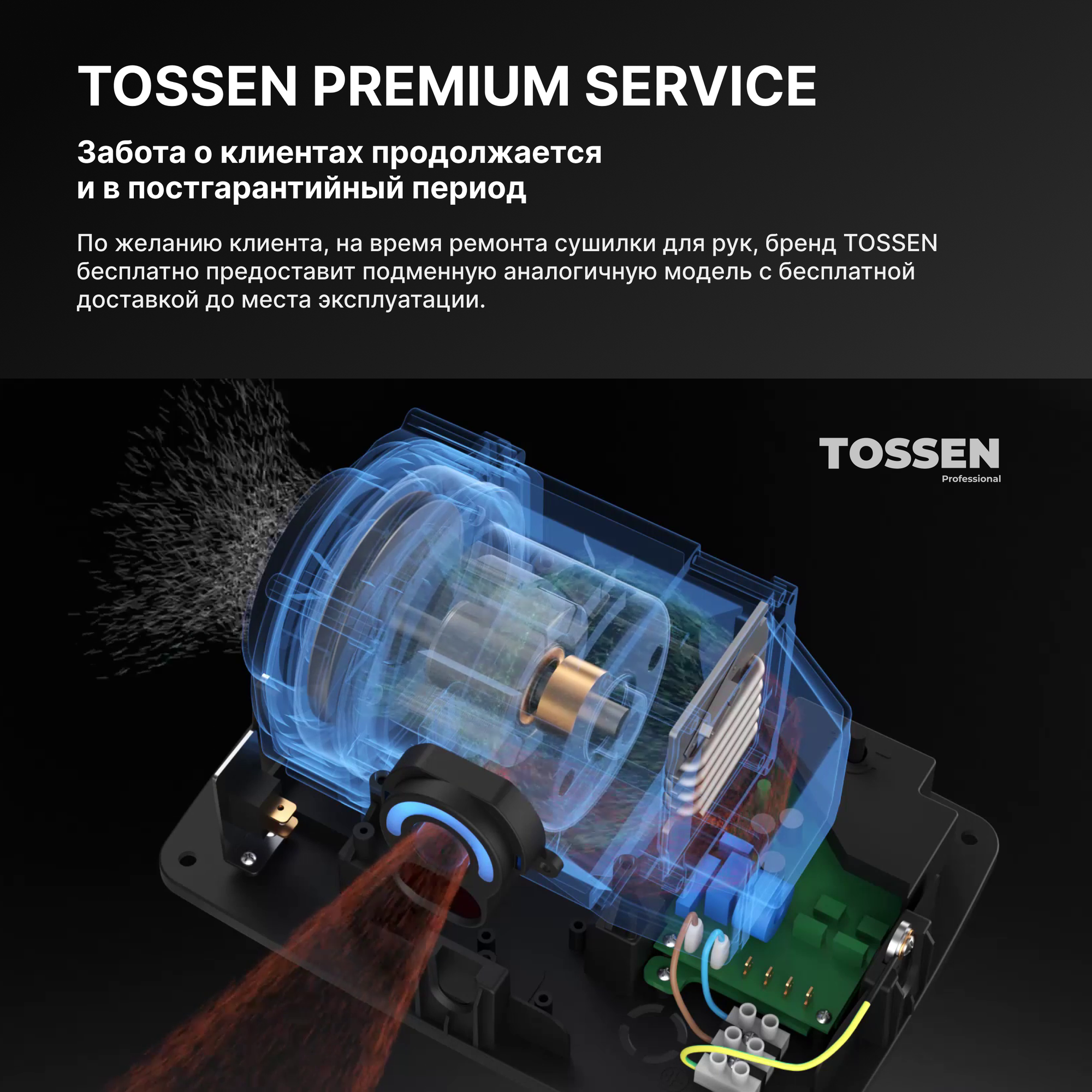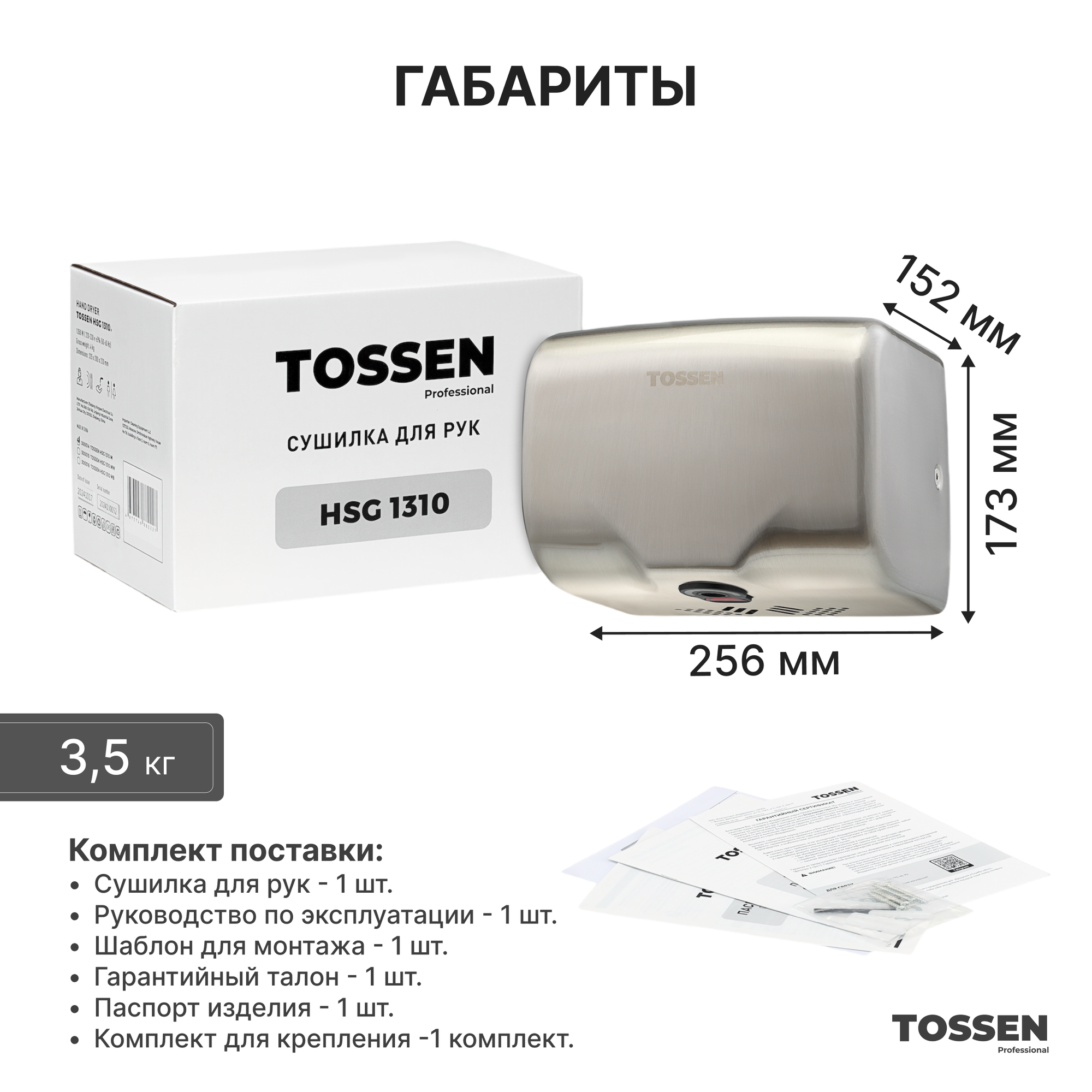 Сушилка для рук электрическая - TOSSEN HSG 1310 M (высокоскоростная антивандальная UV) интересное:
