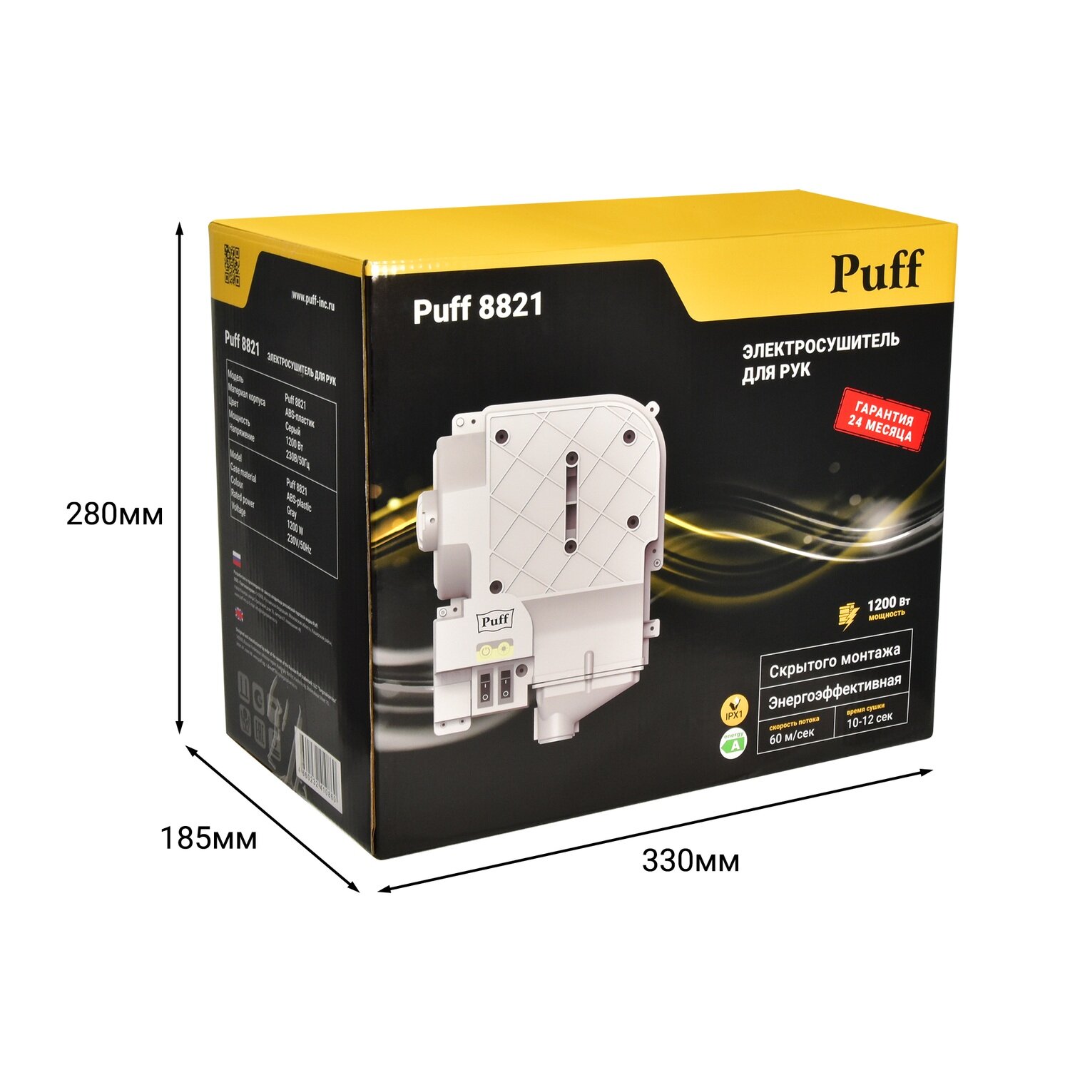 Купить Электросушитель для рук Puff-8821 мощность 1200Вт, скрытый монтаж, Арт: 1401.413