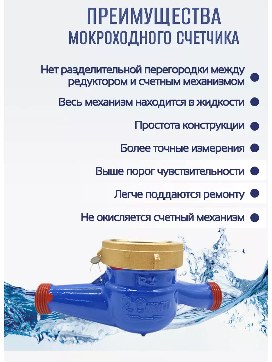 Счетчик воды ЭКО НОМ мокроходный (D-20мм, L-195мм) с КМЧ, чугун интересное: