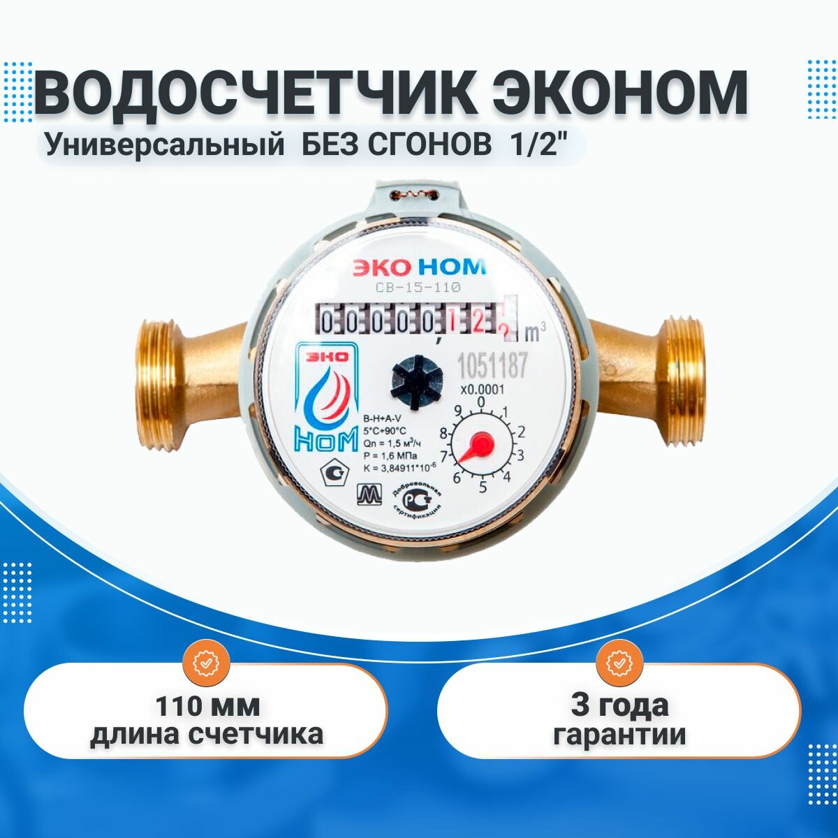 Купить Счетчик для воды (холодной и горячей) ЭКО НОМ универсальный без сгонов 1/2"