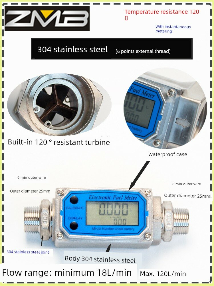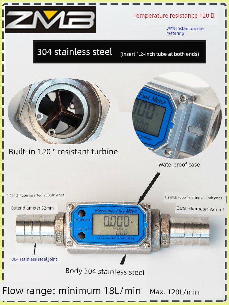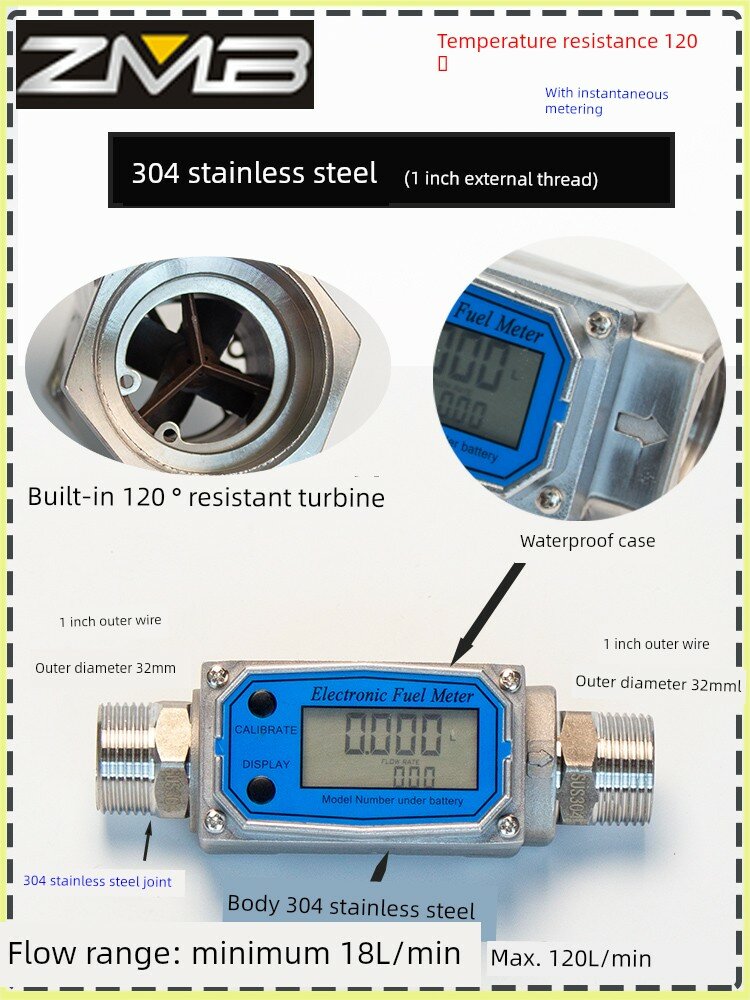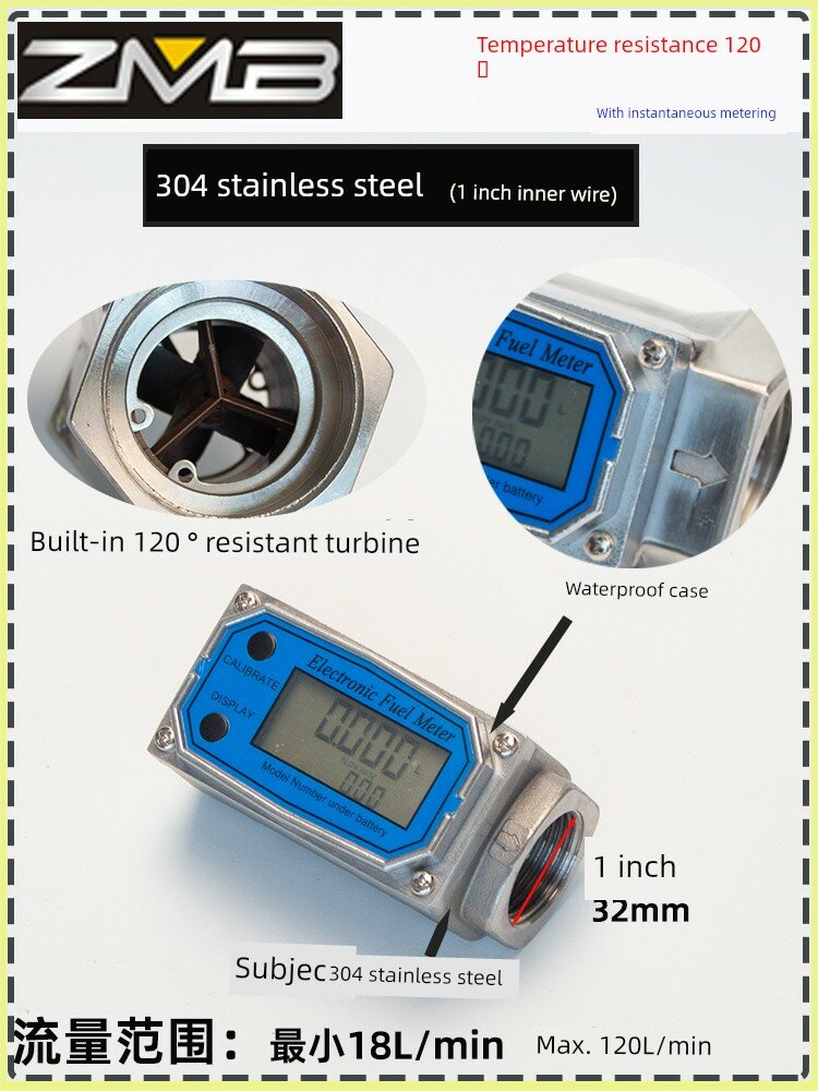 Цифровой расходомер из нержавеющей стали 1.5 дюйма с внешней резьбой и вставкой в трубу, водонепроницаемый, с измерением температуры до 120°C интересное: