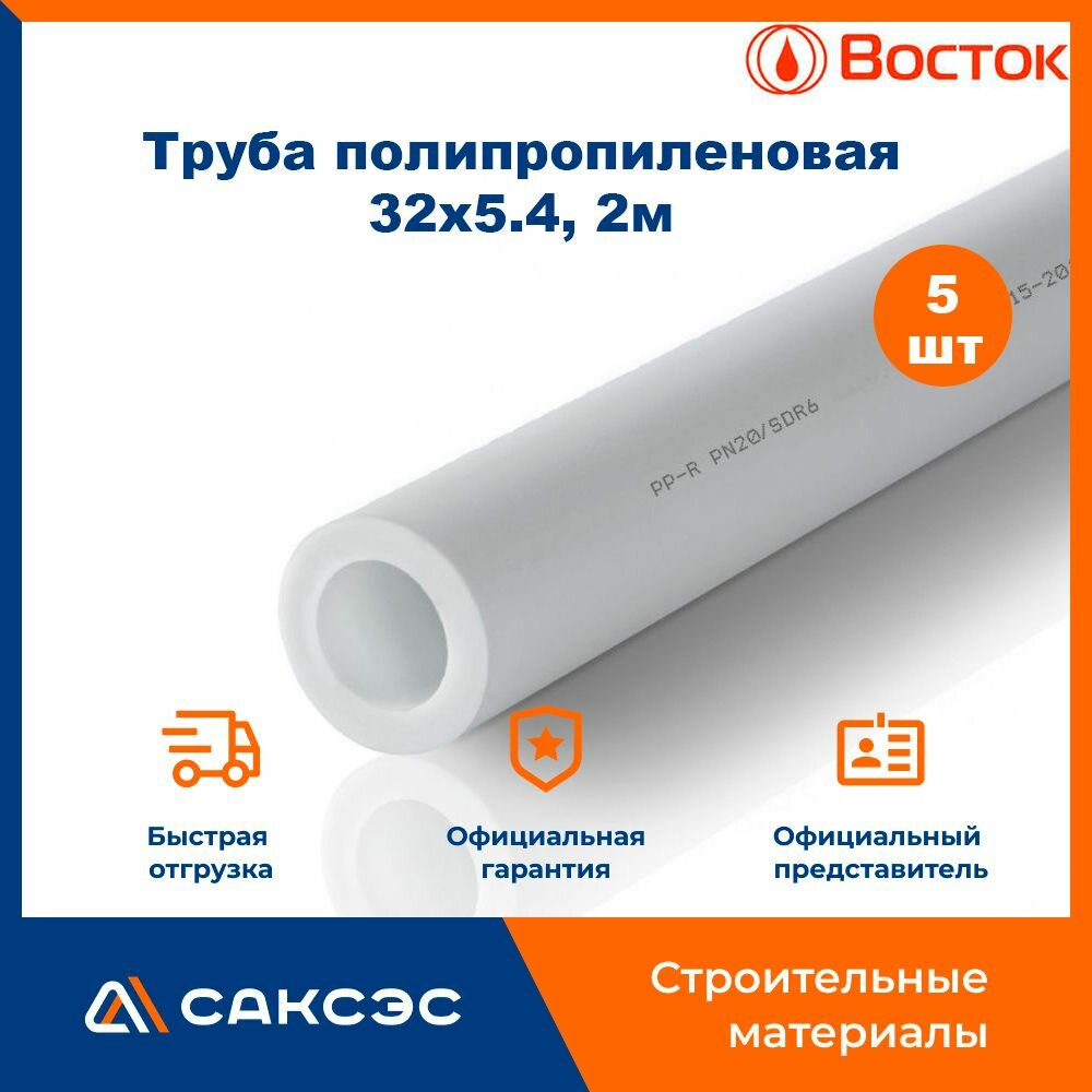 Труба полипропиленовая 32 PN-20 (32х5.4), 2м Восток / труба ппр 32, 5 шт. интересное:
