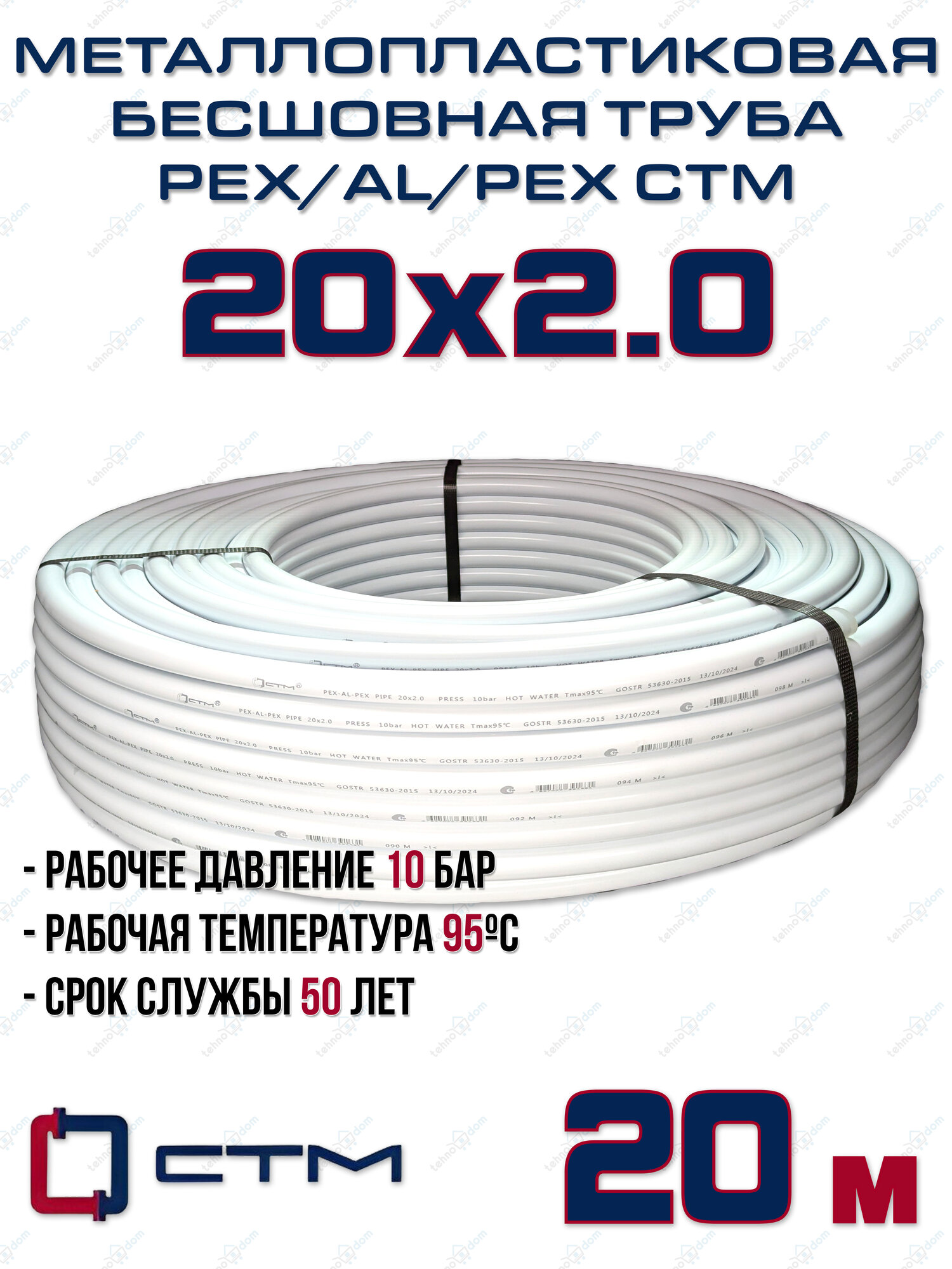 Купить Труба металлопластиковая бесшовная CTM PEX-AL-PEX 20x2,0 (белая) отрезок 20м