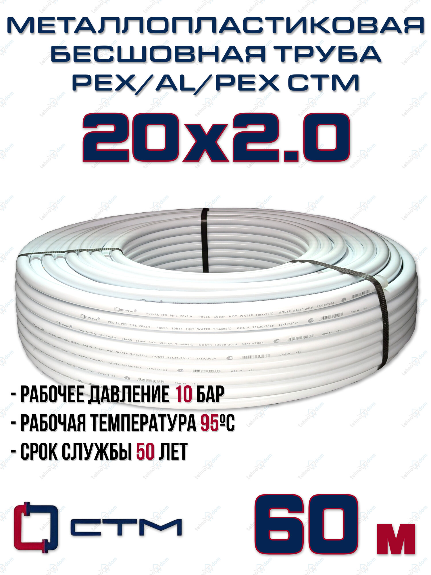 Купить Труба металлопластиковая бесшовная CTM PEX-AL-PEX 20x2,0 (белая) отрезок 60м