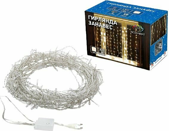 Гирлянда новогодняя светодиодная Neon-Night Дождь-штора 144 LED, 1,5х1,5м с контроллером, теплое белое свечение