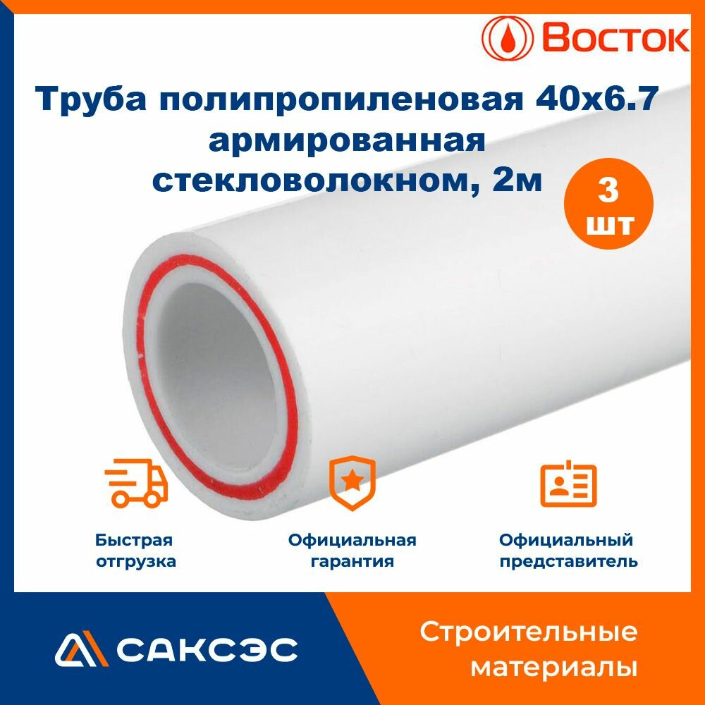 Труба полипропиленовая 40 армированная стекловолокном PN-20 (40х6.7), 2м Восток / труба ппр 40, 3 шт. интересное: