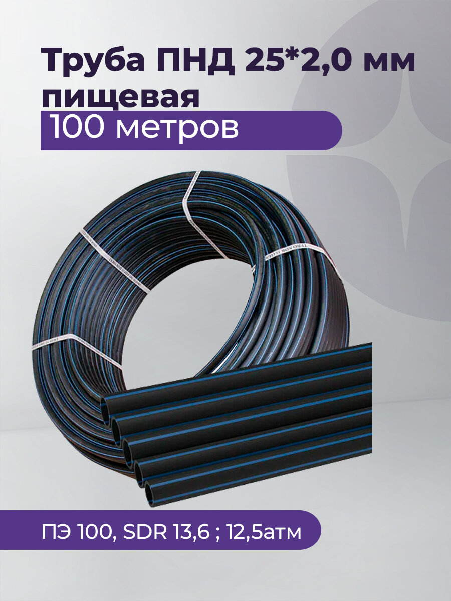 Купить Труба ПНД 25*2,0 мм пищевая (ПЭ 100, SDR13,6 ,12,5атм) TEBO 100 метров