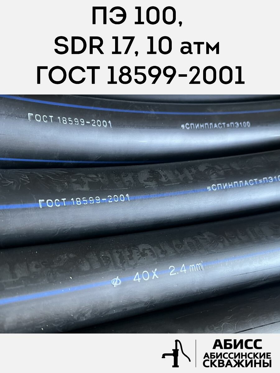СохранитьТруба ПНД 40х2,4. длина 50метров. толщина стенки 2,4мм. водопроводная питьевая напорная (10атм) ПЭ100, SDR17 ГОСТ18599-2001 интересное: