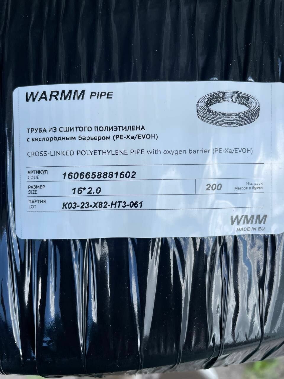 Труба для отопления и теплых полов Warmm PEX-A EVOH PN10, 16x2,2 мм, 200 м