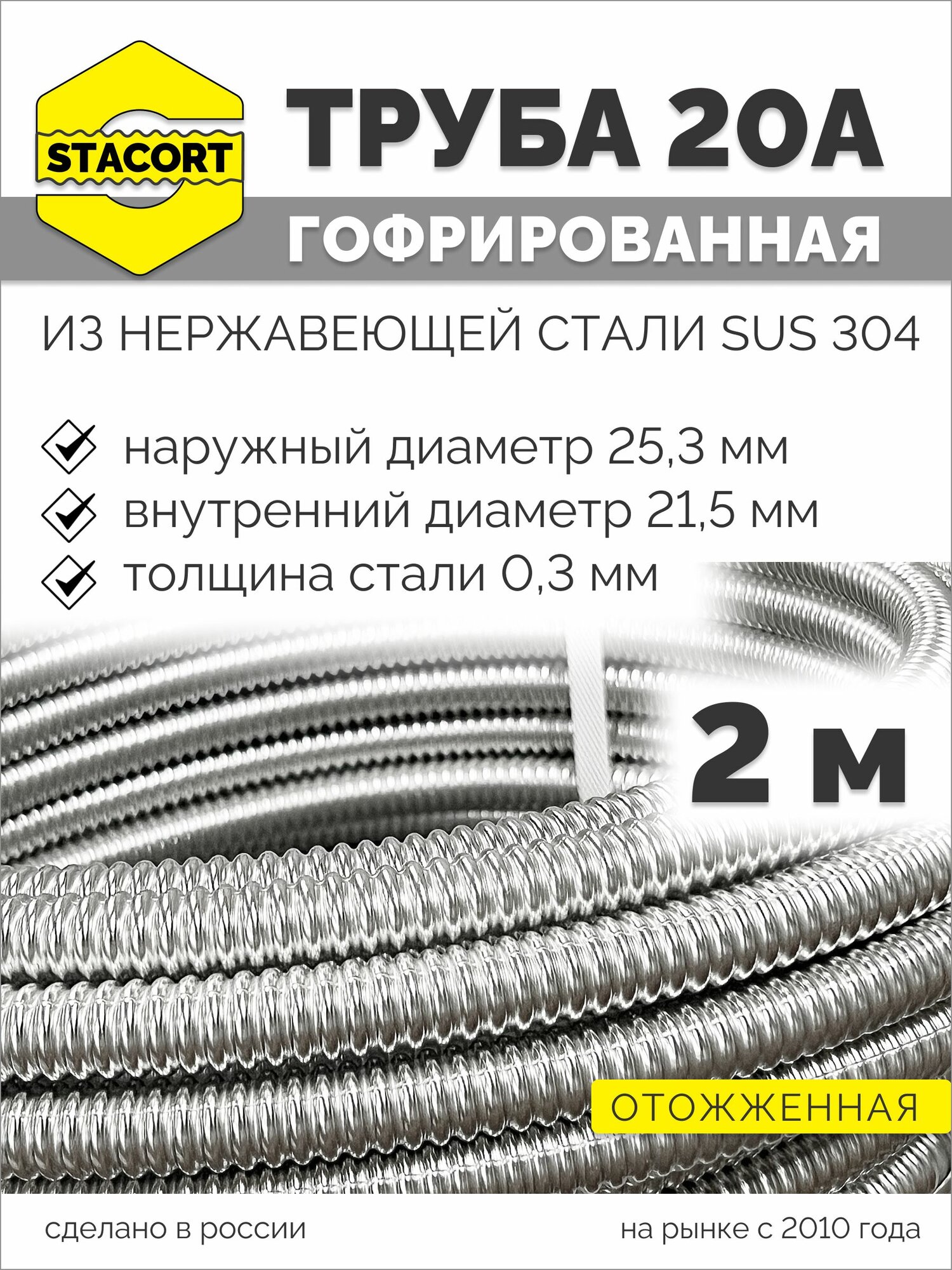2 м. 20А Труба гофрированная водопроводная из нержавеющей стали 20А, отожженная, STACORT интересное: