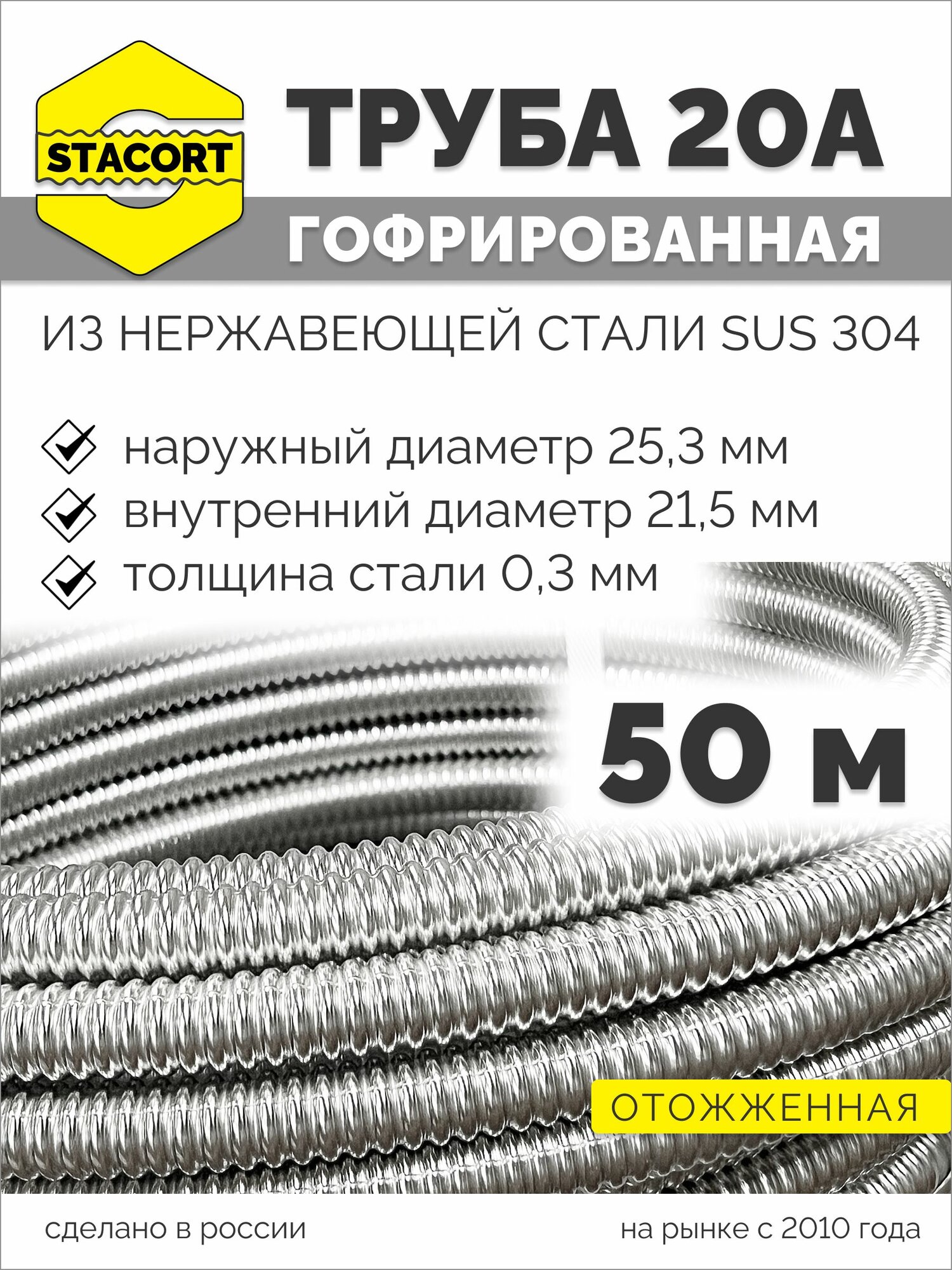 50 м. 20А Труба гофрированная водопроводная из нержавеющей стали 20А, отожженная, STACORT интересное: