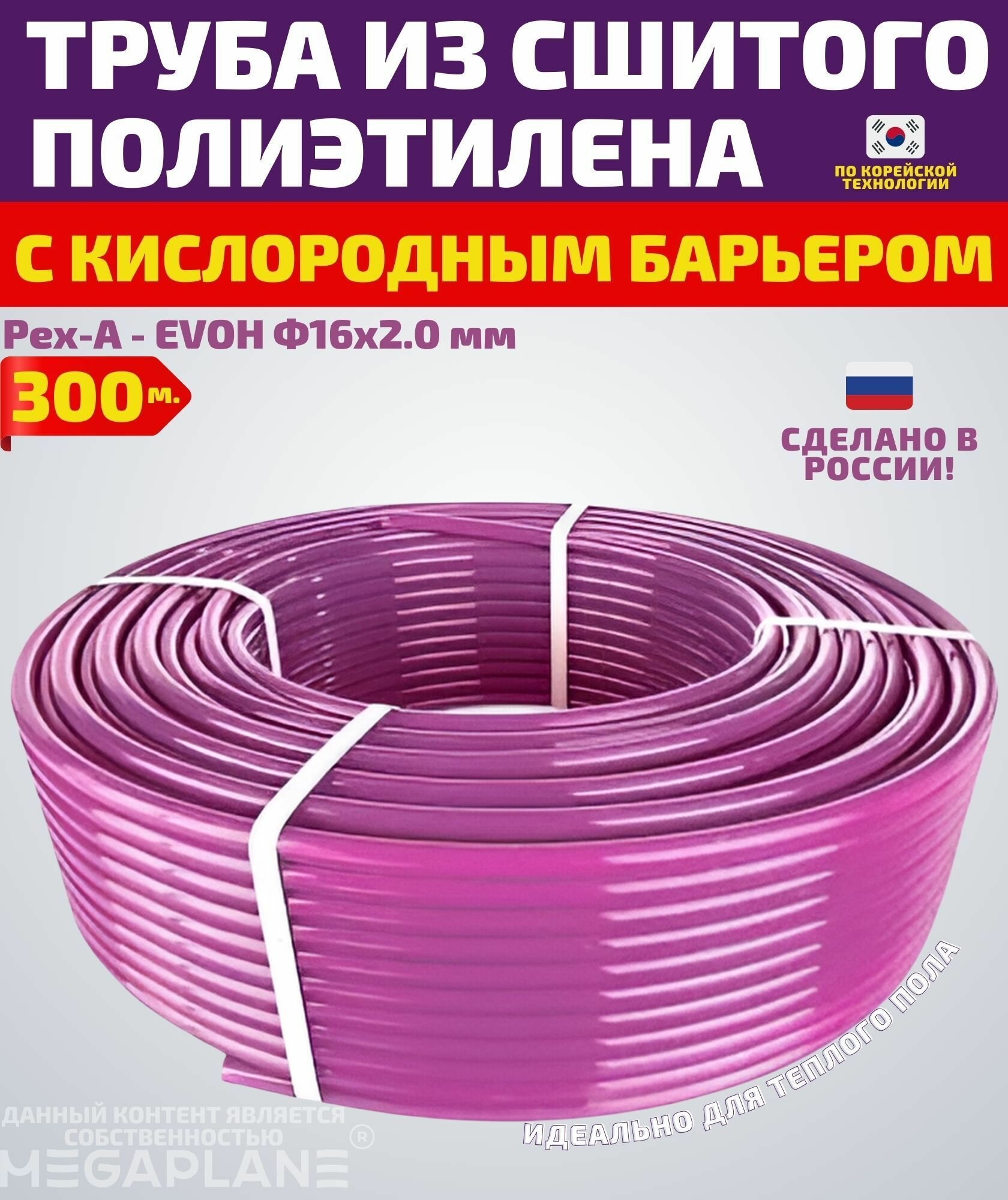 Труба из сшитого полиэтилена для теплого пола Рех-А - EVOH Ф16х2.0 мм (фиолетовая)-отрезок 150м