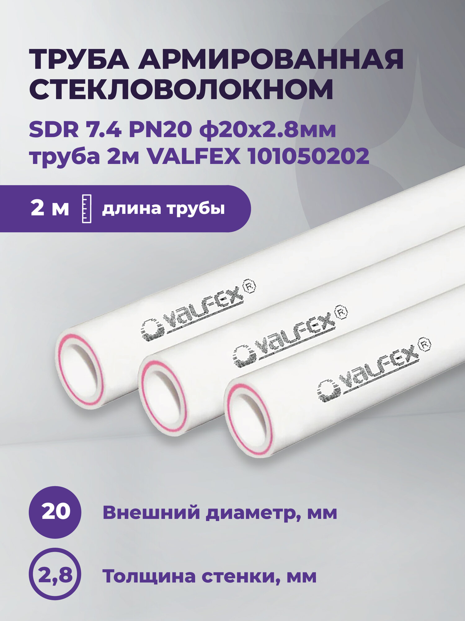 Труба армированная стекловолокном SDR 7.4 PN20 ф20х2.8мм труба 2м VALFEX 101050202 интересное: