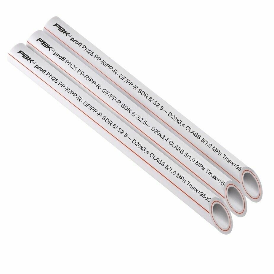 Труба полипропиленовая 20х3,4 (PN 25) армированная стекловолокном / 10 метров (5 шт по 2м) / РВК PROFI интересное: