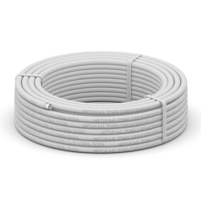 Труба гофрированная водопроводная из нержавеющией стали Stahlmann 15A, в белой оболочке, отожженная, 20м