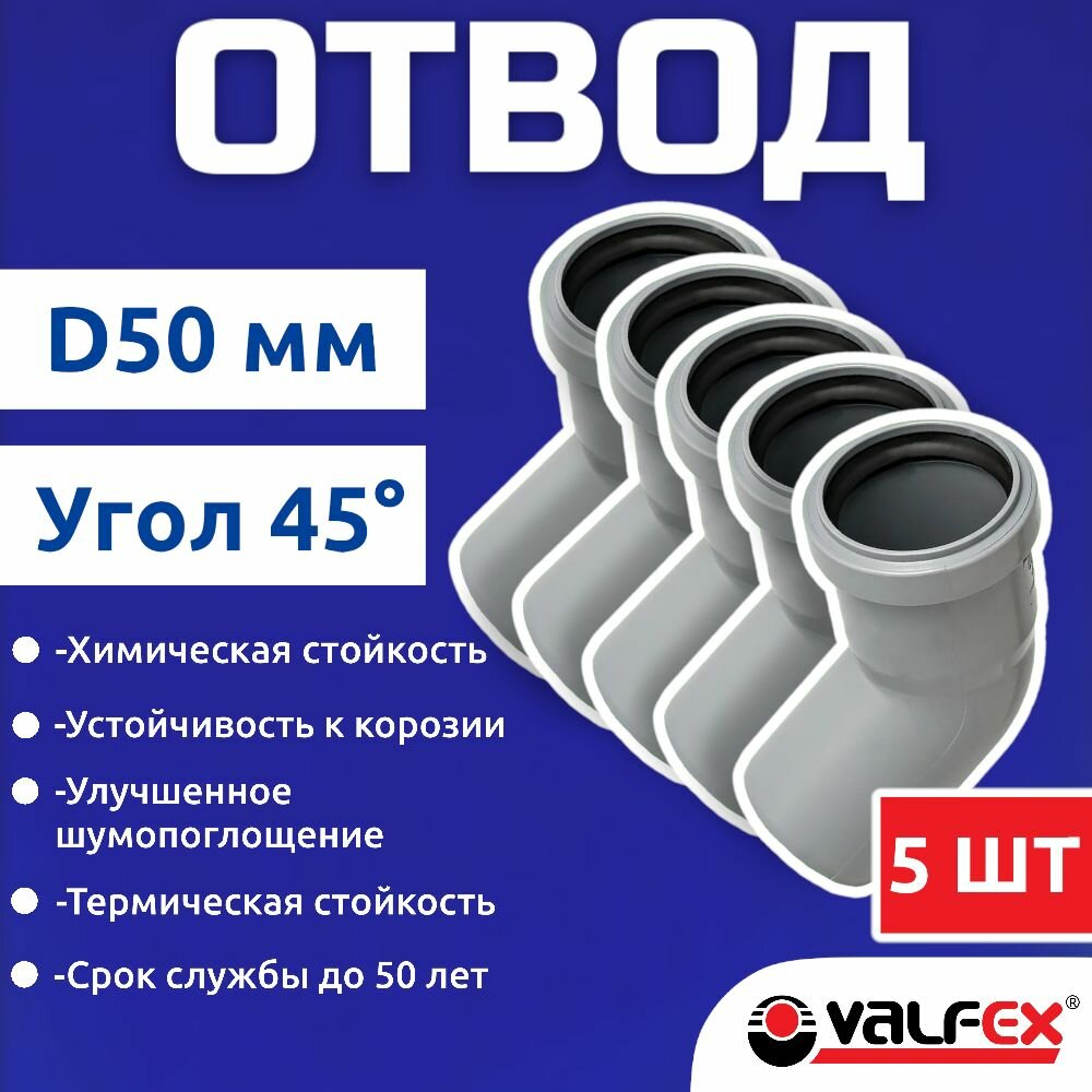 Отвод для канализационной трубы 50 мм 45 градусов, полипропиленовый(5 шт) интересное: