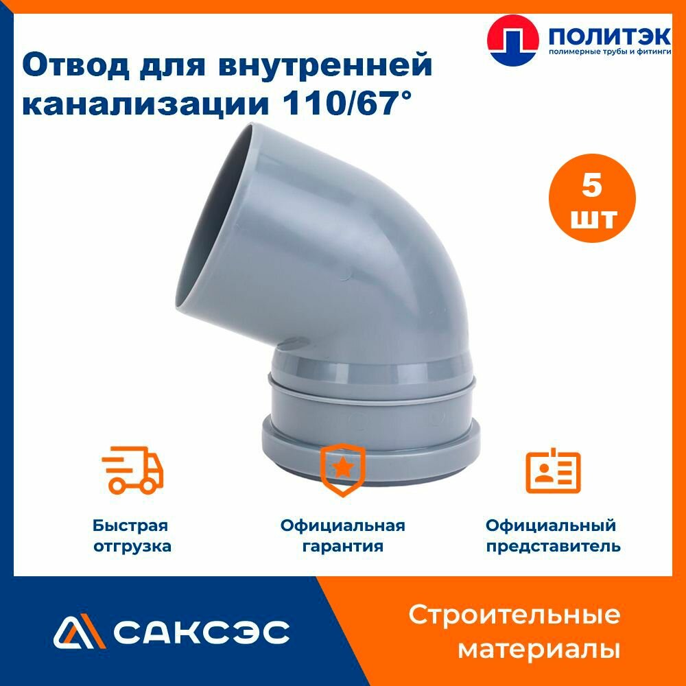 Отвод для внутренней канализации 110/67 полипропиленовый, Политэк, 5шт. интересное: