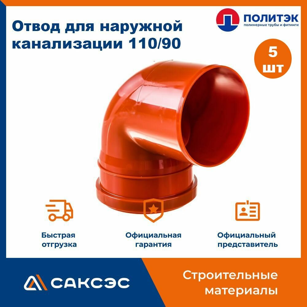 Отвод для наружной канализации 110/90 полипропиленовый, Политэк, 5 шт интересное: