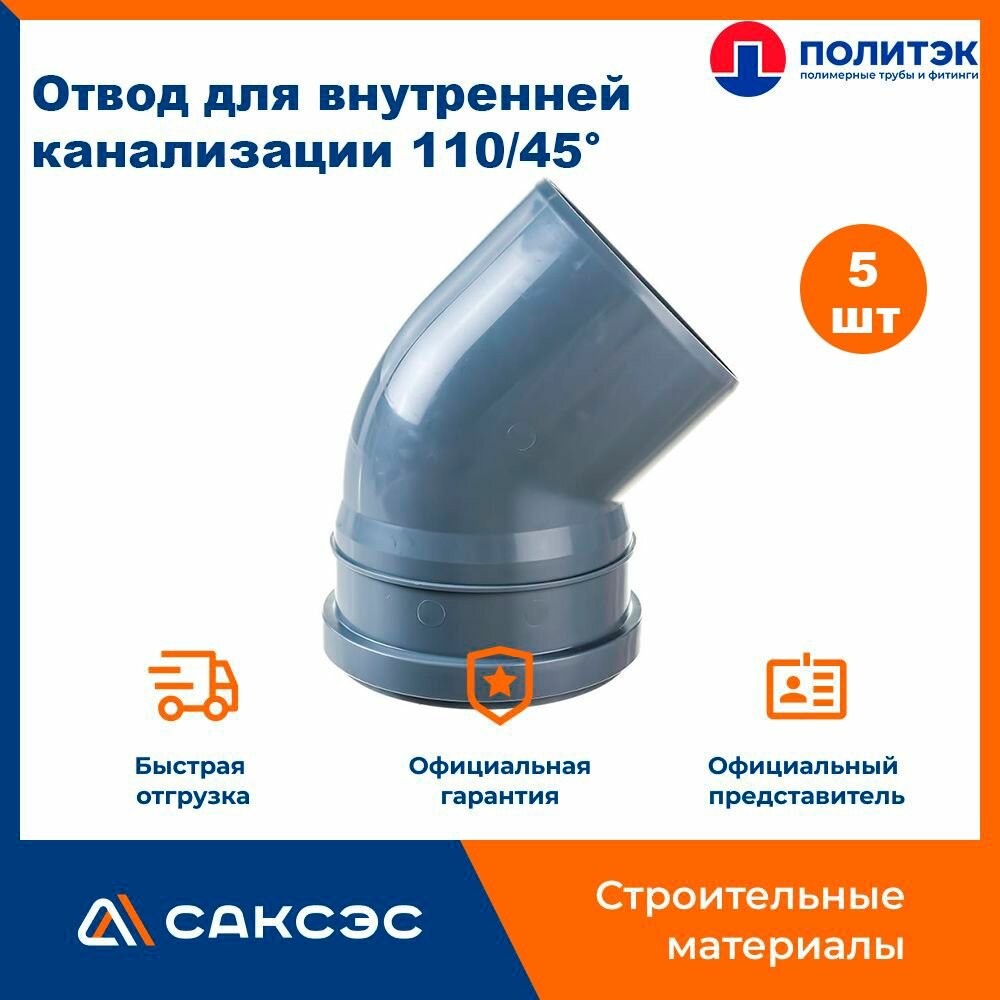 Отвод для внутренней канализации 110/45 полипропиленовый, Политэк, 5шт. интересное: