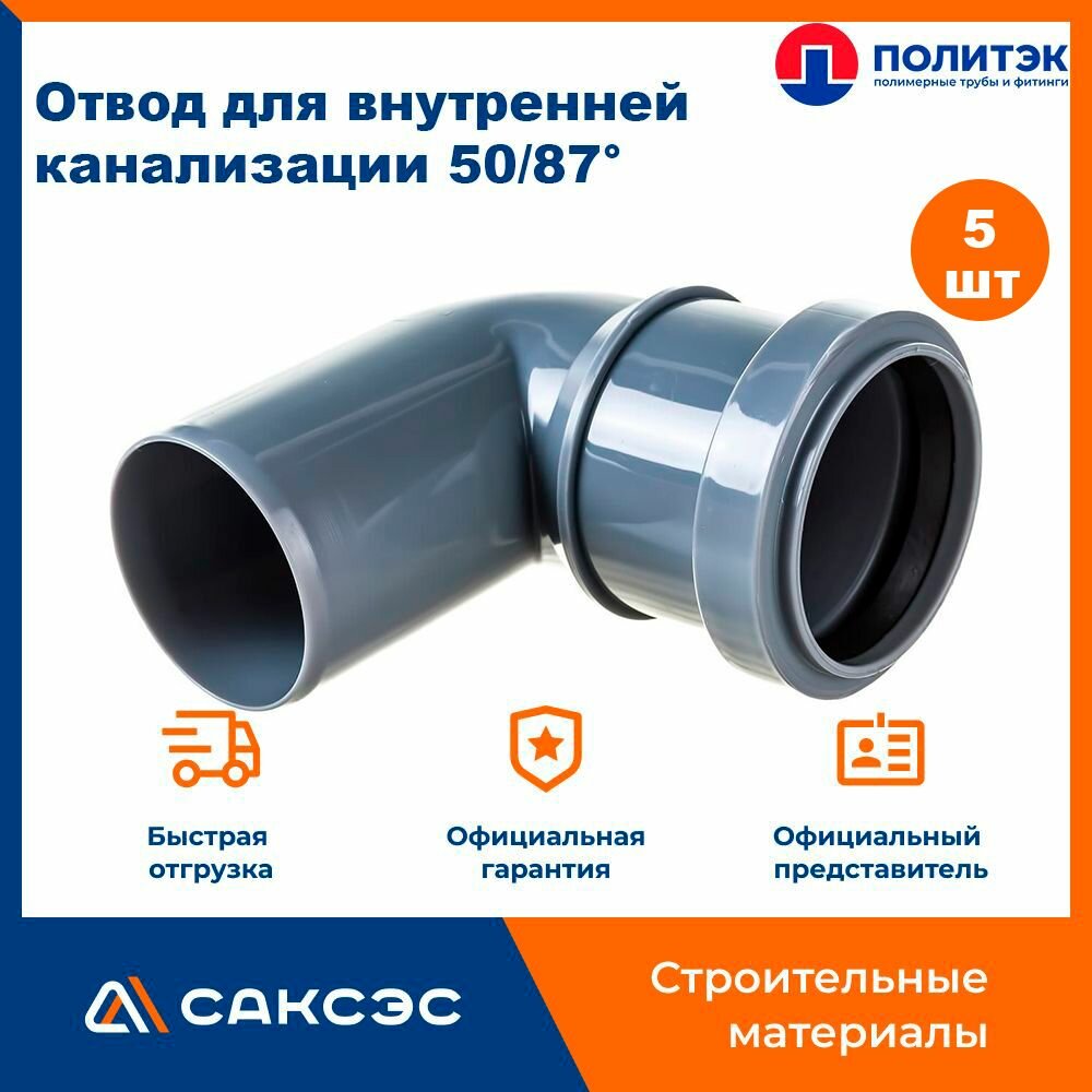 Отвод для внутренней канализации 50/87 полипропиленовый, Политэк, 5шт. интересное: