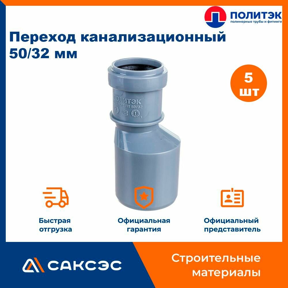 Переход канализационный 50/32 мм, Политэк / Переход эксцентрический, 5шт. интересное: