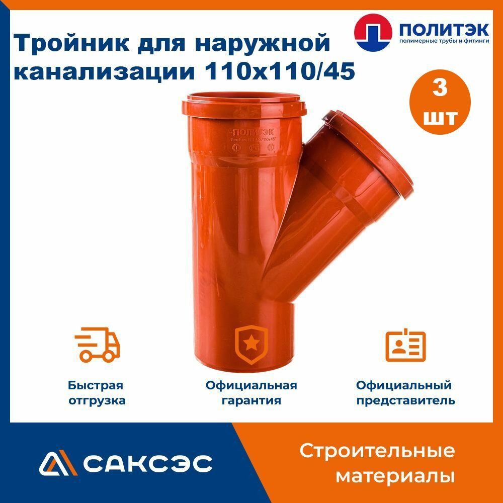 Купить Тройник для наружной канализации 110х110/45 равнопроходной полипропиленовый, Политэк, 3 шт