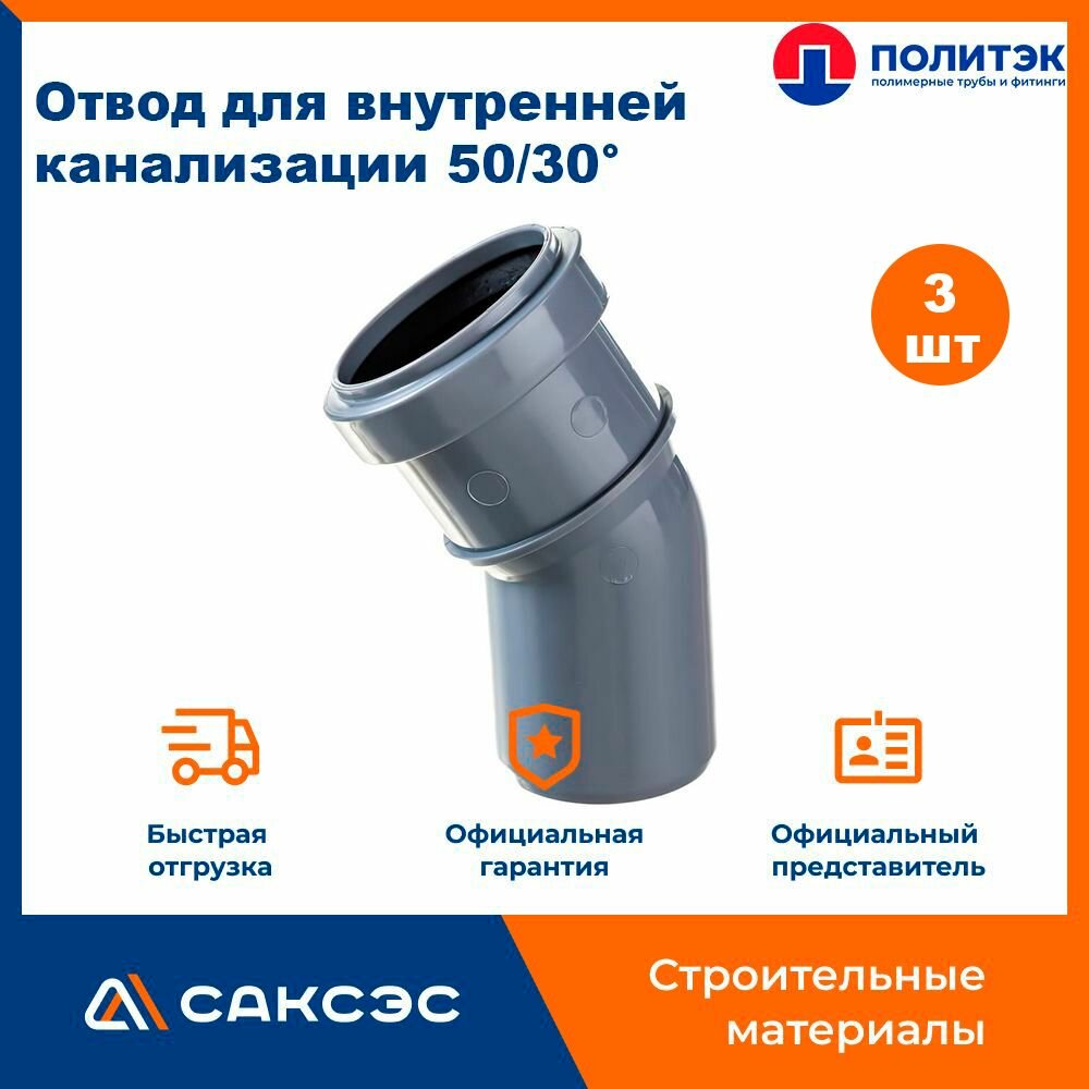 Отвод для внутренней канализации 50/30 полипропиленовый, Политэк, 3шт. интересное: