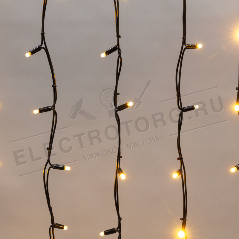 Светодиодная гирлянда "Бахрома" Neon-night 5.6х0.9 м, 240 желтых светодиодов, постоянное свечение, черный каучуковый провод